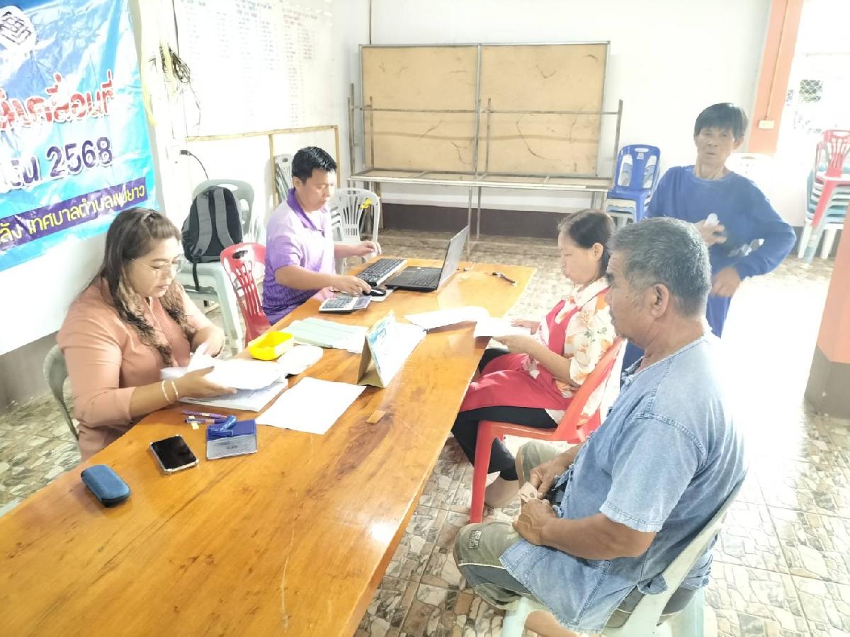 ออกพื้นทีให้บริการรับชำระภาษีและค่าธรรมเนียมเก็บขนมูลฝอย บ้านกลางทุ่ง หมู่ที่ 7 ตำบลแม่ยาว