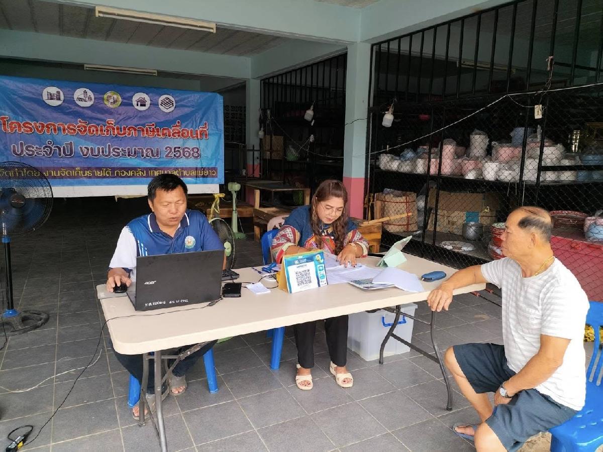 ออกพื้นทีให้บริการรับชำระภาษีและค่าธรรมเนียมเก็บขนมูลฝอย บ้านดงเจริญ หมู่ที่ 17 ตำบลแม่ยาว