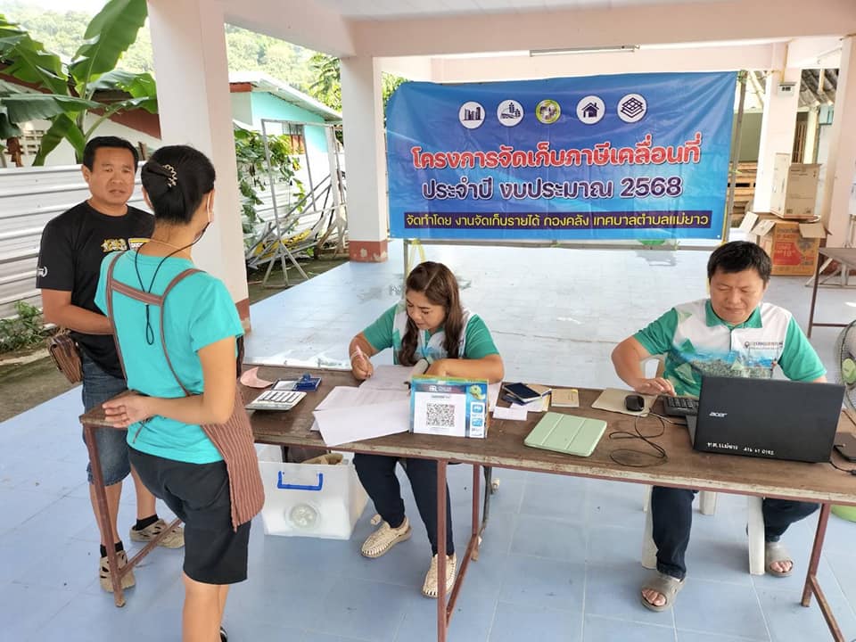 ออกพื้นทีให้บริการรับชำระภาษีและค่าธรรมเนียมเก็บขนมูลฝอย บ้านห้วยขมใน หมู่ที่ 1 ตำบลแม่ยาว