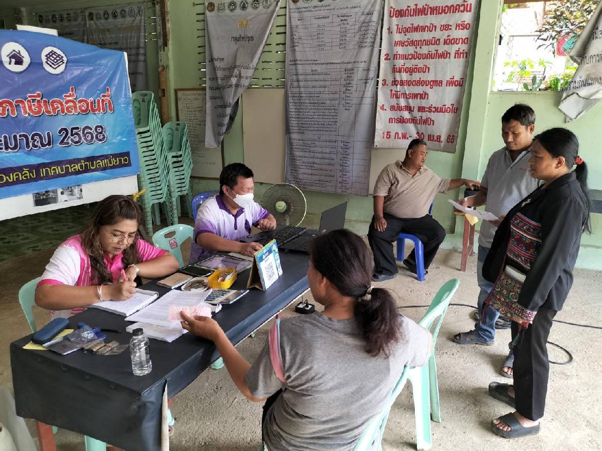 ทศบาลตำบลแม่ยาวออกพื้นทีให้บริการรับชำระภาษีและค่าธรรมเนียมเก็บขนมูลฝอยบ้านห้วยขมนอก หมู่ที่ 10 ตำบลแม่ยาว
