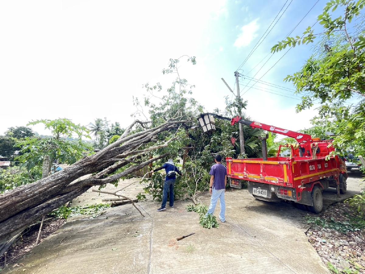 เทศบาลตำบลแม่ยาวดำเนินการตัดต้นไม้ใหญ่ล้มทับกีดขวางทางจราจร บ้านศิริราษฎร์ หมู่ที่ 14