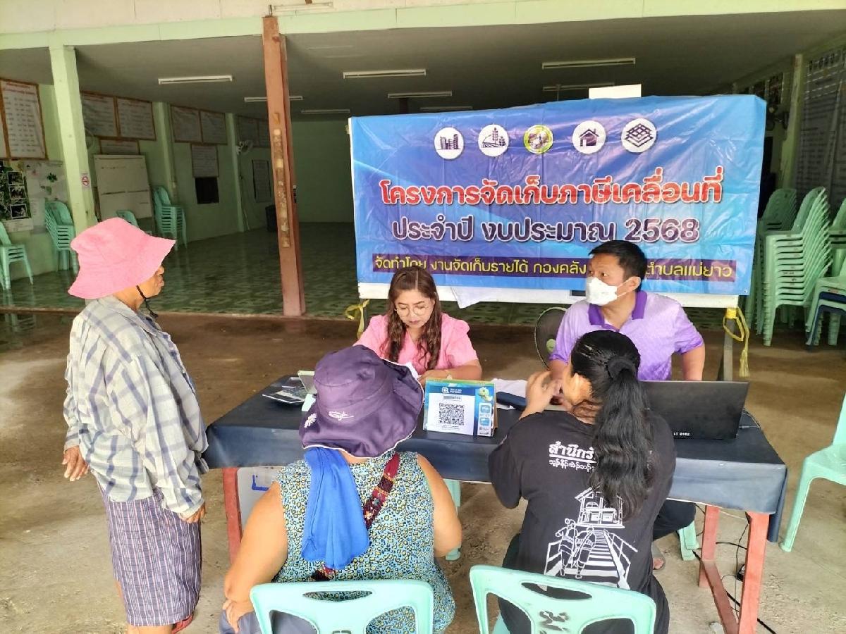 ออกพื้นทีให้บริการรับชำระภาษีและค่าธรรมเนียมเก็บขนมูลฝอยบ้านห้วยขมนอก หมู่ที่ 10 ตำบลแม่ยาว