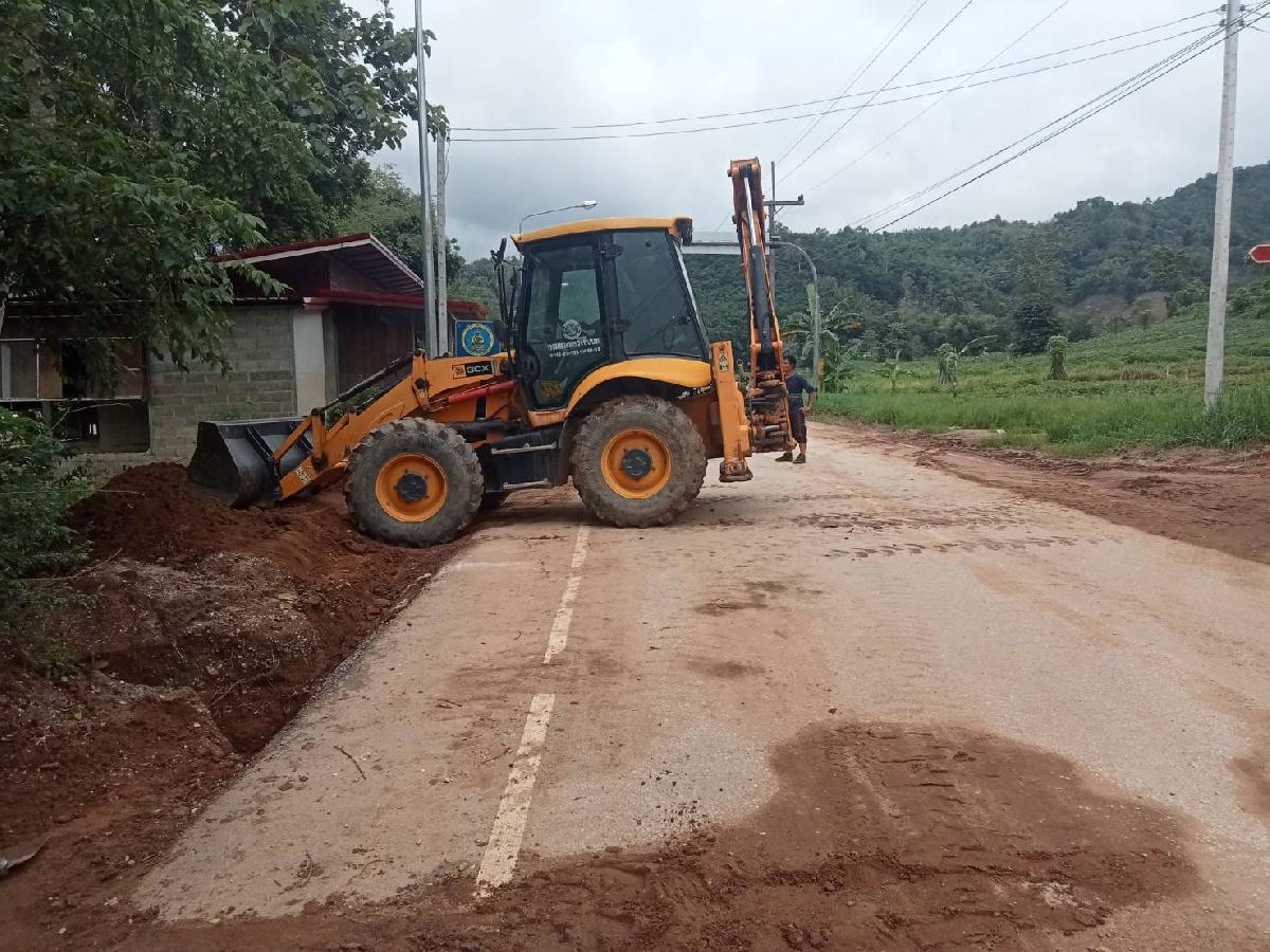เทศบาลตำบลแม่ยาว ลงพื้นที่ในการประสานงานและอำนวยความสะดวกให้แก่ เจ้าหน้าที่ทางหลวงชนบท ในการปรับเกลี่ยดินโคลนบนถนนสายทาง ชร.4044 ตั้งแต่บ้านรวมมิตร-บ้านผามูบ