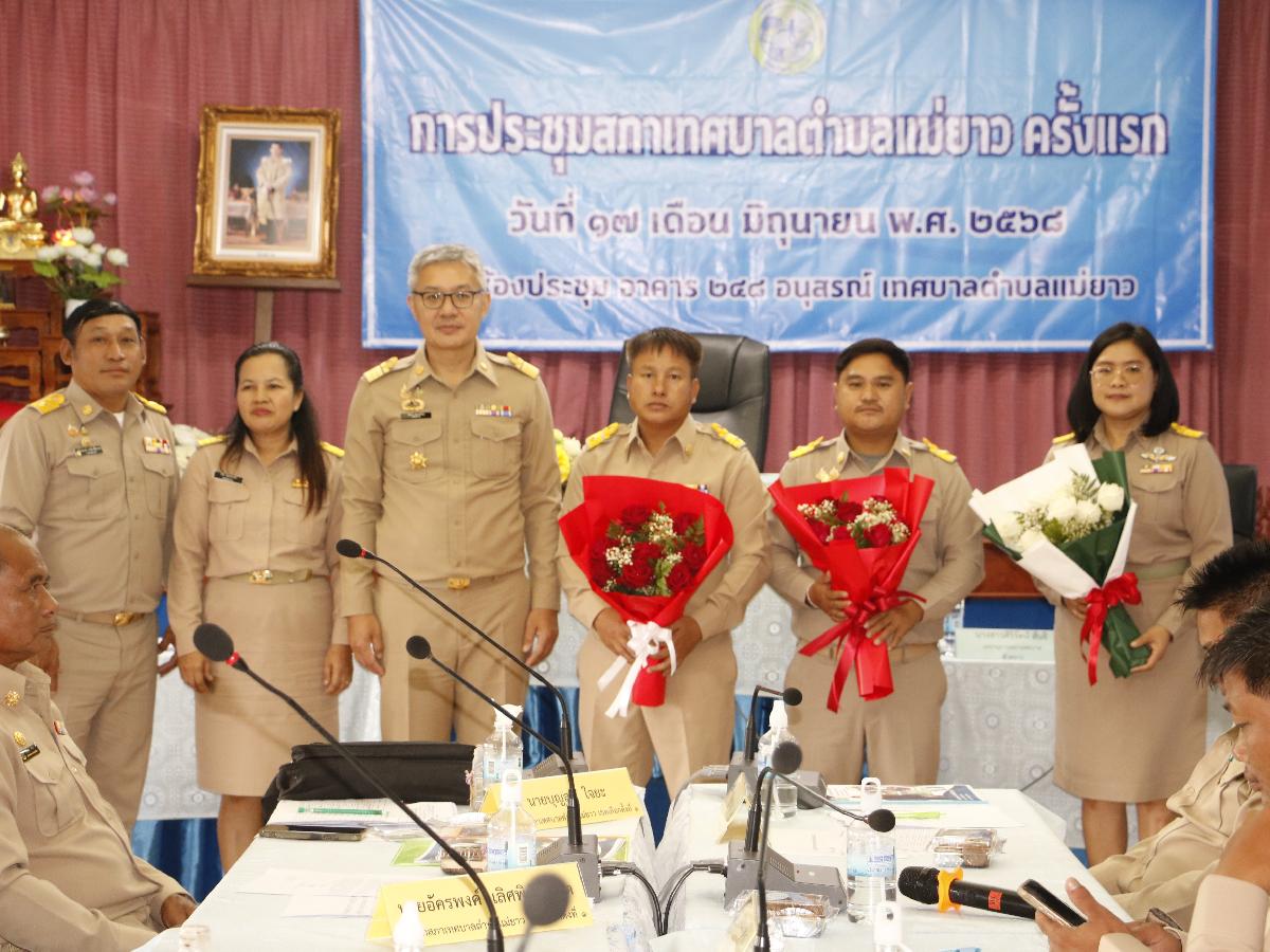 ในการประชุมสภาเทศบาลครั้งแรกในวันนี้ ได้เชิญนายบุญสม ใจยะ สมาชิกสภาเทศบาลตำบลแม่ยาว เขต 1 ซึ่งเป็นผู้อาวุโสมากที่สุด ขึ้นทำหน้าที่เป็นประธานสภาเทศบาลชั่วคราว เพื่อนำสมาชิกสภาเทศบาลตำบลแม่ยาว กล่าวคำปฏิญาณตน และเป็นผู้ทำหน้าที่ดำเนินการเลือกประธานสภาเทศบาลตำบลแม่ยาว