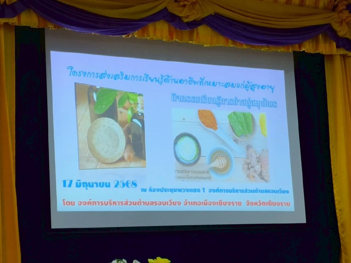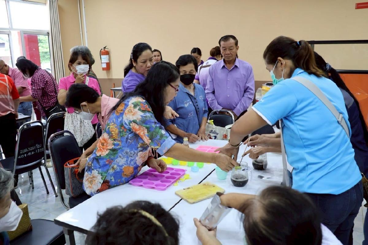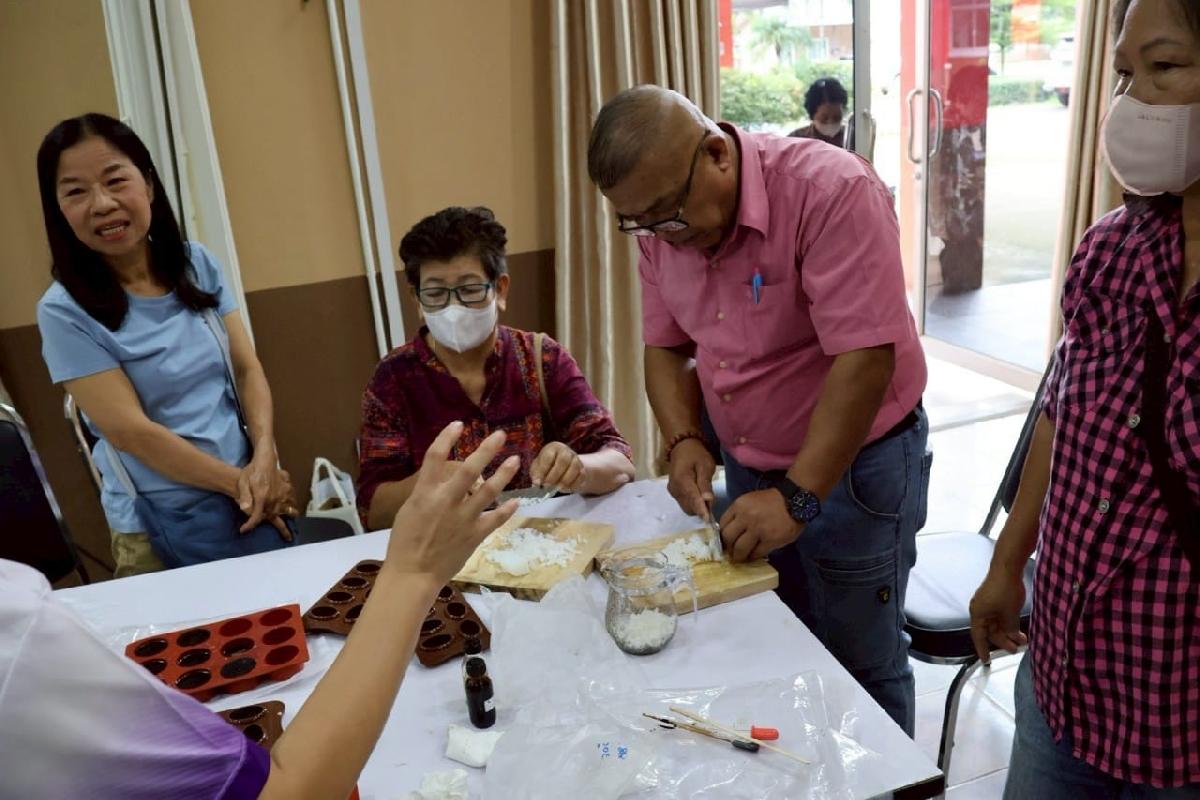 นักพัฒนาชุมชนชำนาญการ ร่วมเป็นวิทยากรถ่ายทอดความรู้การทำสบู่สมุนไพรให้แก่กลุ่มผู้สูงอายุ อบต.รอบเวียง