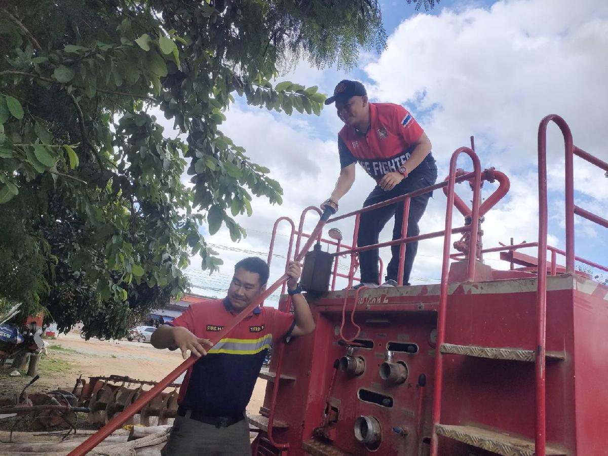 วันที่ 24 มิถุนายน 2568 งานป้องกันและบรรเทาสาธารณภัยนำรถบรรทุกน้ำ พร้อมเจ้าหน้าที่ ออกส่งน้ำอุปโภค เพื่อบรรเทาปัญหาภัยความเดือดร้อน น้ำไม่เพียงพอ บ้านริมกก หมู่ที่ 4 ตามที่ประชาชนขอรับบริการ