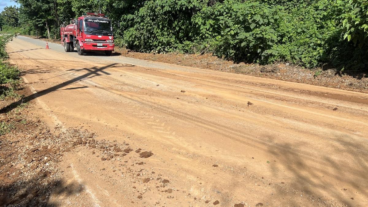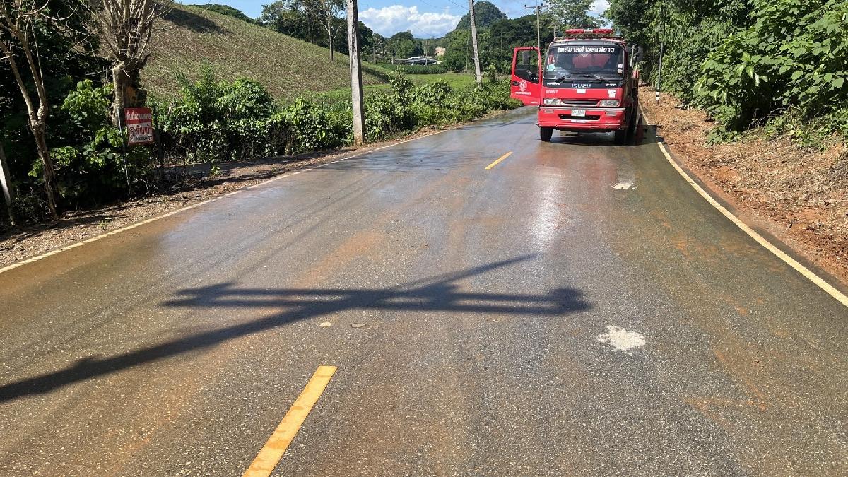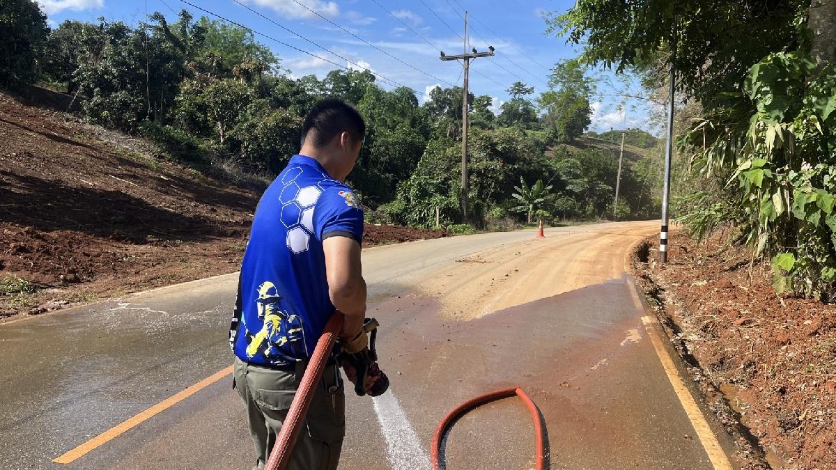 เทศบาลตำบลแม่ยาว ล้างทำความสะอาดถนน บ้านป่าอ้อ หมู่ 5 เนื้องจากมีดินไหลมาทับถมบนถนนอาจทำให้เกิดอุบัติเหตุ