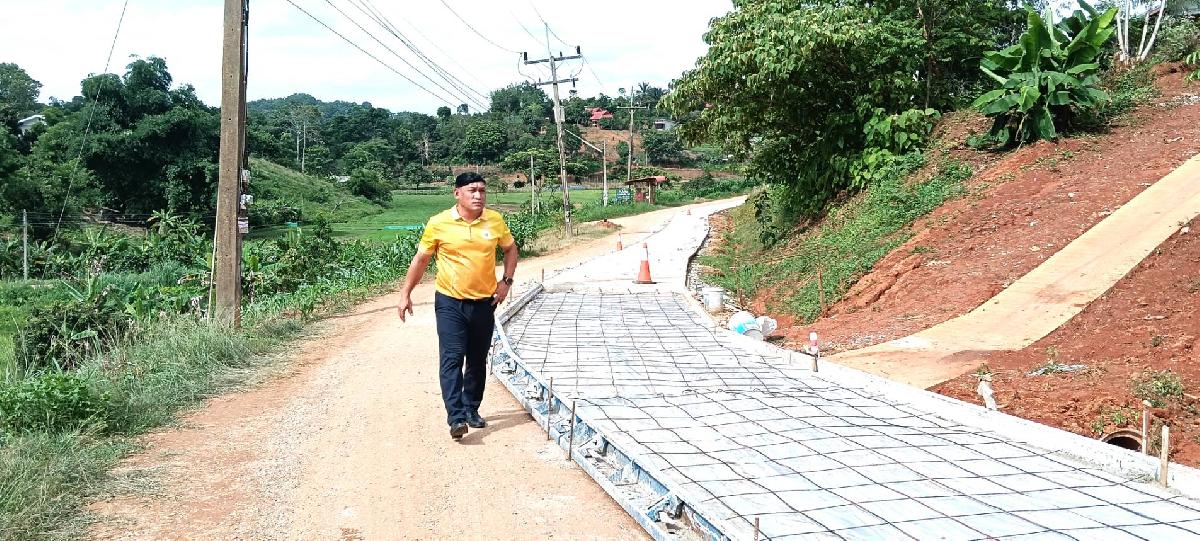 นายกเทศมนตรีตำบลแม่ยาว ลงพื้นตรวจดูความคืบหน้าโครงการก่อสร้างถนนคอนกรีตเสริมเหล็ก หมู่ 9,11,17