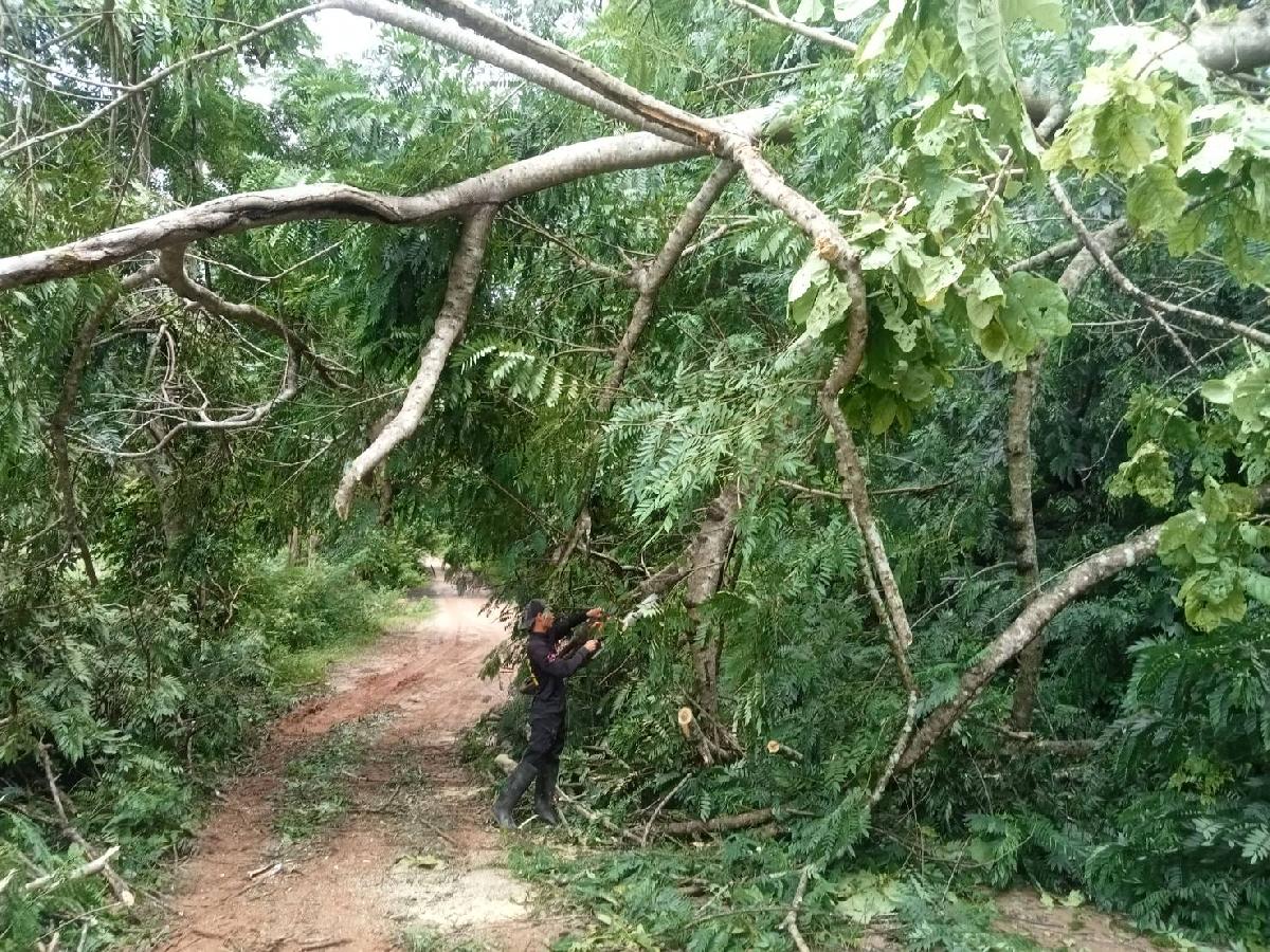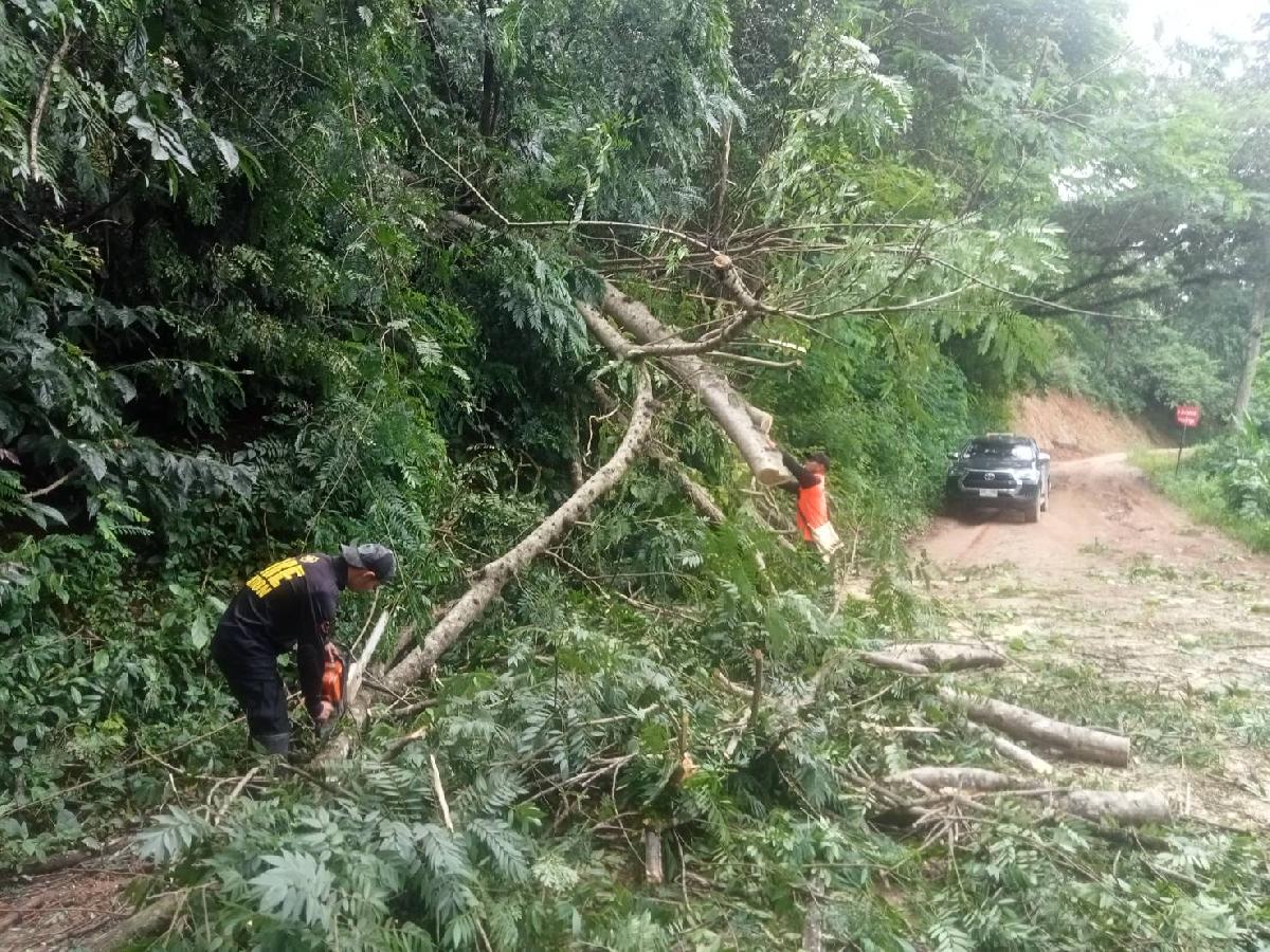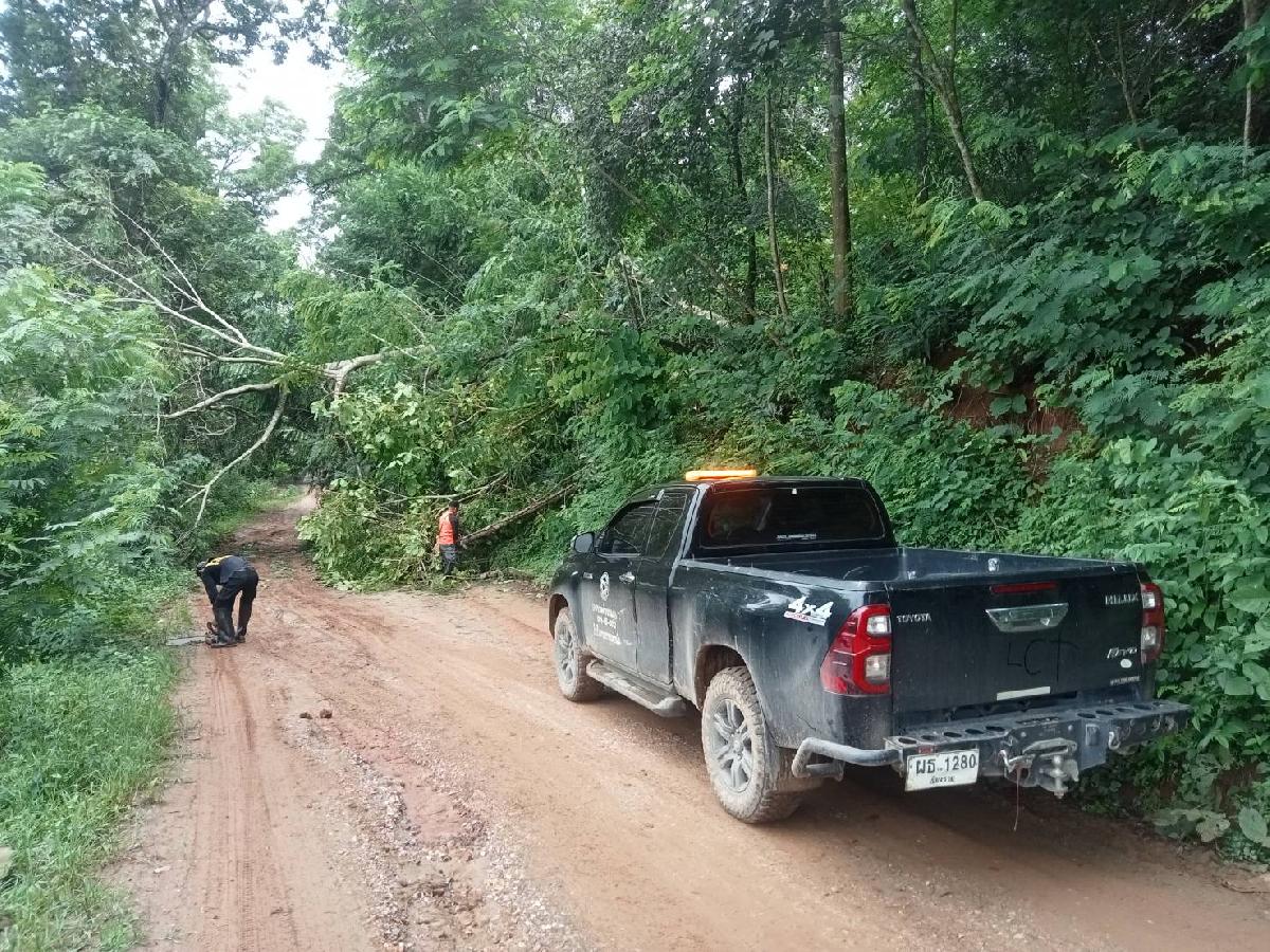 ออกตรวจสอบต้นไม้ล้มขวางทางจราจรพร้อมเคลียร์เส้นทางสัญจร ถนนก่อนถึงโรงเรียนผาขวางวิทยา