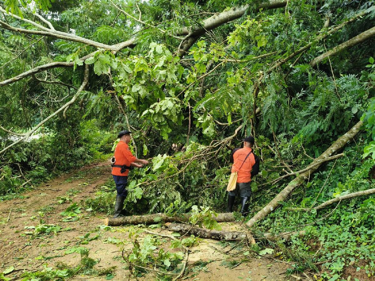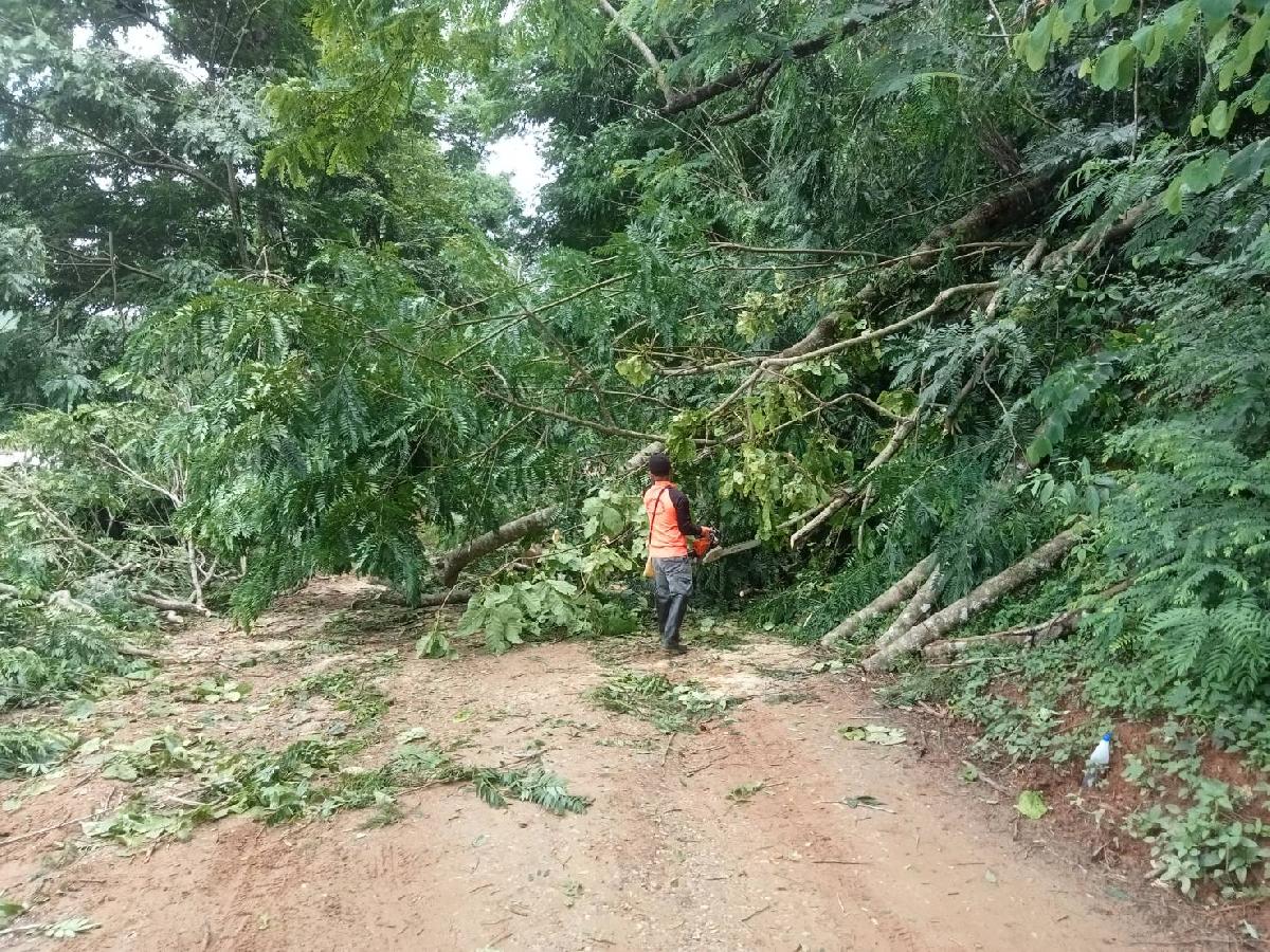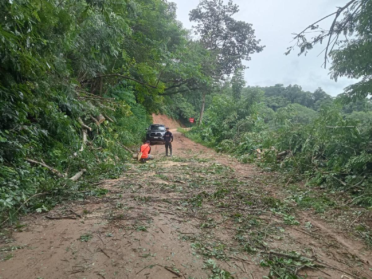 ออกตรวจสอบต้นไม้ล้มขวางทางจราจรพร้อมเคลียร์เส้นทางสัญจร ถนนก่อนถึงโรงเรียนผาขวางวิทยา