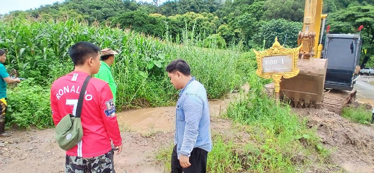 ลงพื้นที่จุดเกิดเหตุ ตรวจสอบ น้ำท่วมขังถนน บ้านป่าอ้อใหม่ บ้านบริวารบ้านป่าอ้อ หมู่ที่ 5 เพื่อแก้ไขปัญหาความเร่งด่วนให้กับพี่น้องประชาชนตำบลแม่ยาว