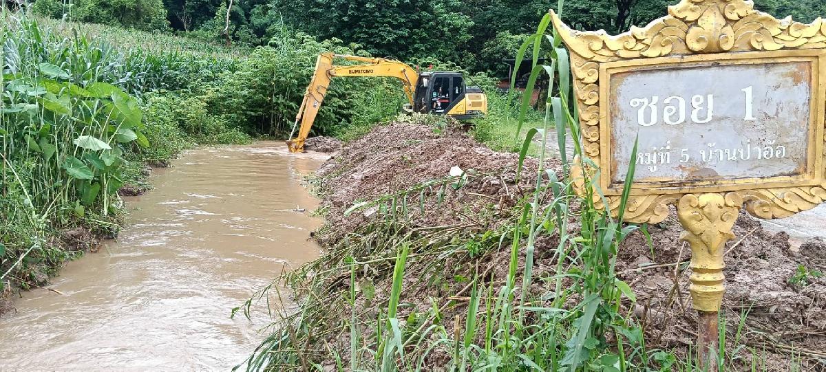 #ลงพื้นที่จุดเกิดเหตุ ตรวจสอบ น้ำท่วมขังถนน บ้านป่าอ้อใหม่ บ้านบริวารบ้านป่าอ้อ หมู่ที่ 5 เพื่อแก้ไขปัญหาความเร่งด่วนให้กับพี่น้องประชาชนตำบลแม่ยาว นายอัครพงษ์ เฉลิมเลี่ยมทอง นายกเทศมนตรีตำบลแม่ยาว จึงได้สั่งการให้นำรถแบคโฮทำการขุดร่องระบายน้ำ เพื่อแก้ปัญหาความเดือดร้อนเร่งด่วน