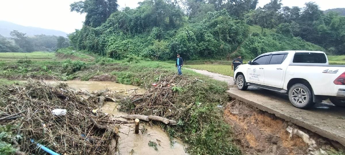 ลงพื้นที่ตรวจสอบ ท่อเหลี่ยม และตลิ่ง ที่ได้รับความเสียหายจากน้ำป่าไหลหลาก บ้านรวมมิตร หมู่ที่ 2 เพื่อหาทางแก้ไขปัญหาความเดือดร้อนต่อไป