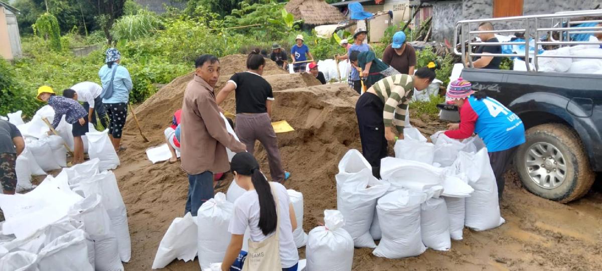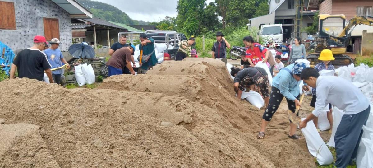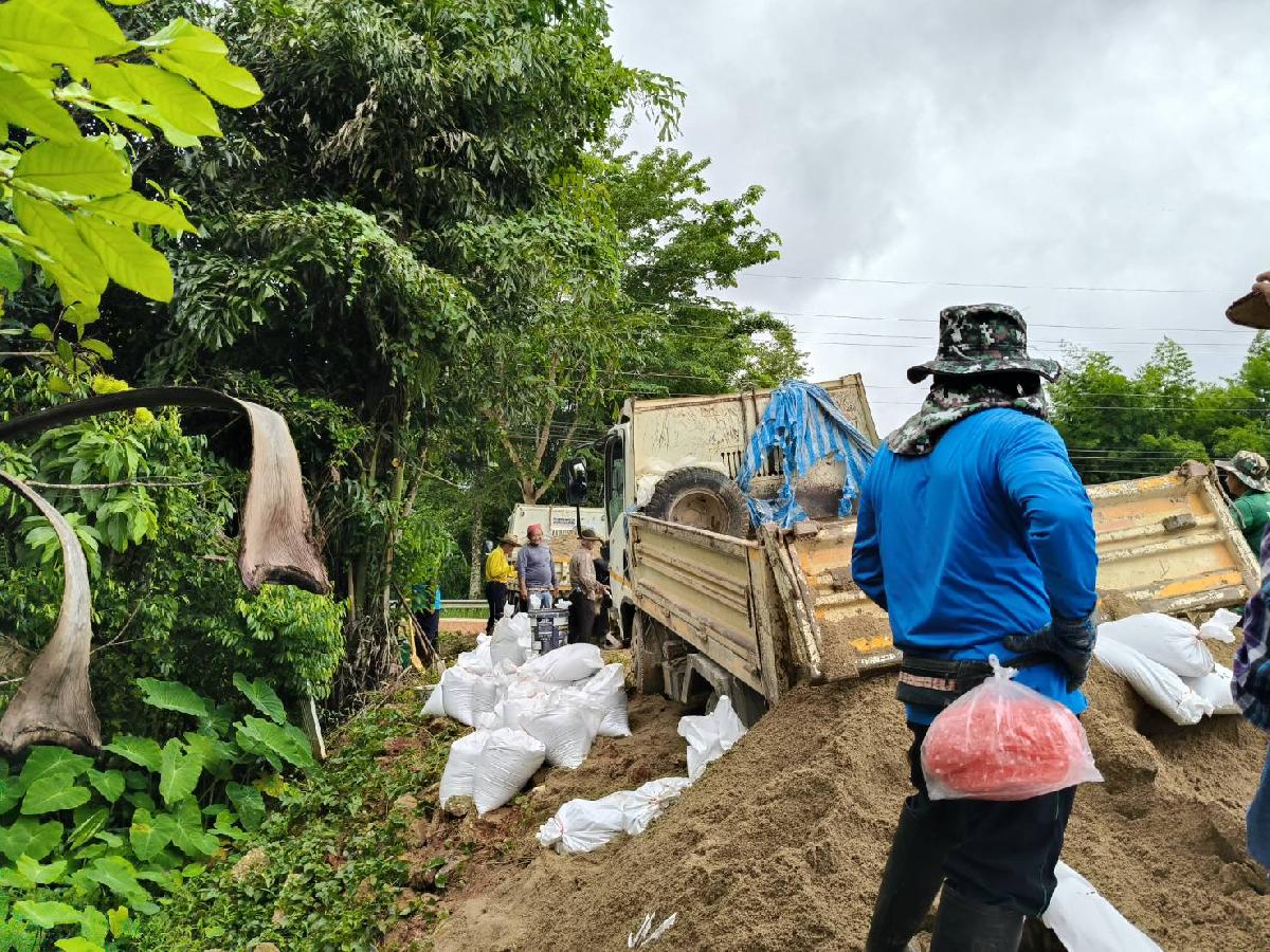 ดำเนินการแจกจ่ายกระสอบบรรจุทราย พร้อมทราย ให้กับพี่น้องประชาชนหมู่บ้านเสี่ยงภัย ในจุดเสี่ยง เพื่อวางแนวป้องกันน้ำไหลเข้าท่วมบ้านเรือนของประชาชน ป้องกันตลิ่ง ในพื้นที่เทศบาลตำบลแม่ยาว บ้านรวมมิตร หมู่ท