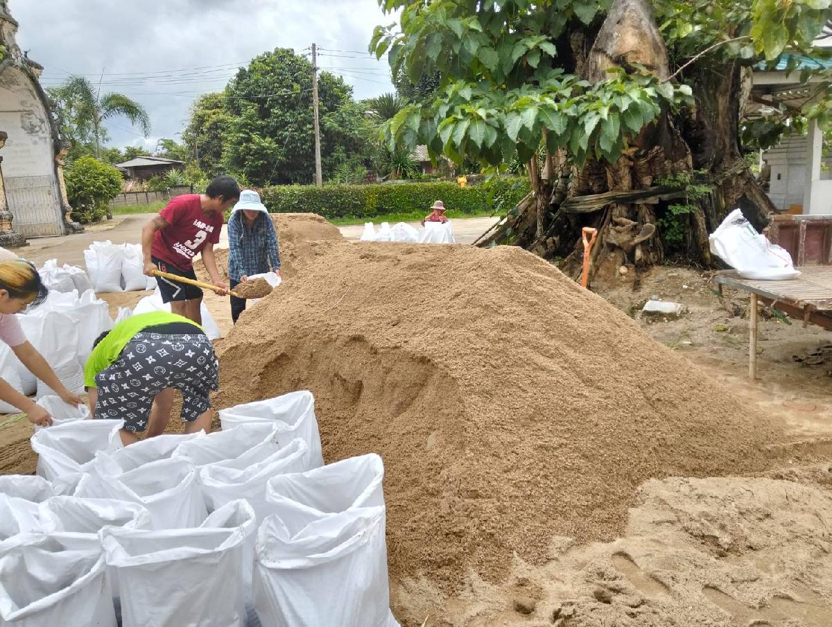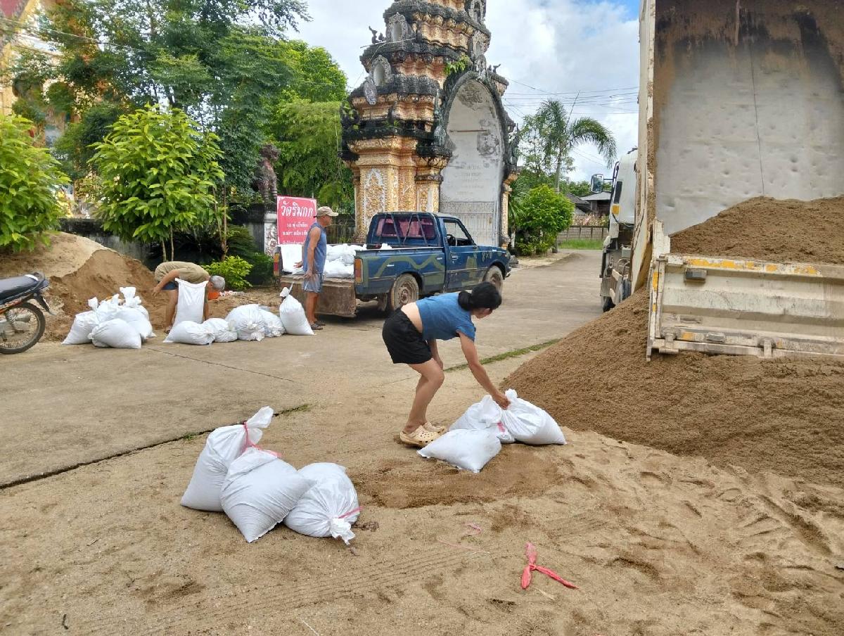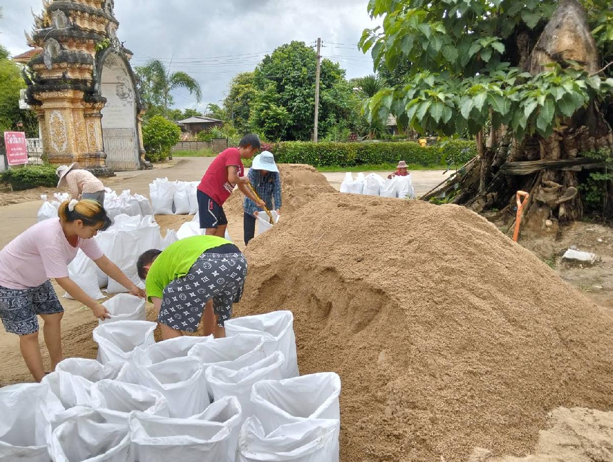 ดำเนินการแจกจ่ายกระสอบบรรจุทราย พร้อมทราย ให้กับพี่น้องประชาชนหมู่บ้านเสี่ยงภัย ในจุดเสี่ยง เพื่อวางแนวป้องกันน้ำไหลเข้าท่วมบ้านเรือนของประชาชน ป้องกันตลิ่ง ในพื้นที่เทศบาลตำบลแม่ยาว บ้านริมกก หมู่ที่ 4 ตำบลแม่ยาว