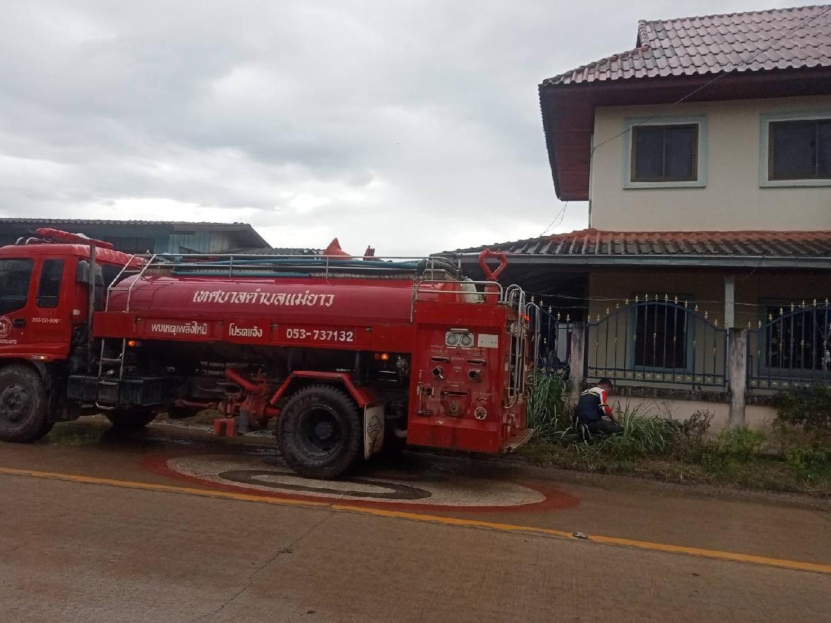 งานป้องกันและบรรเทาสาธารณภัย ฝ่ายปกครอง สำนักปลัดเทศบาล นำรถบรรทุกน้ำหยาดฝน 1ส่งน้ำอุปโภค บ้านริมกก หมู่ที่ 4