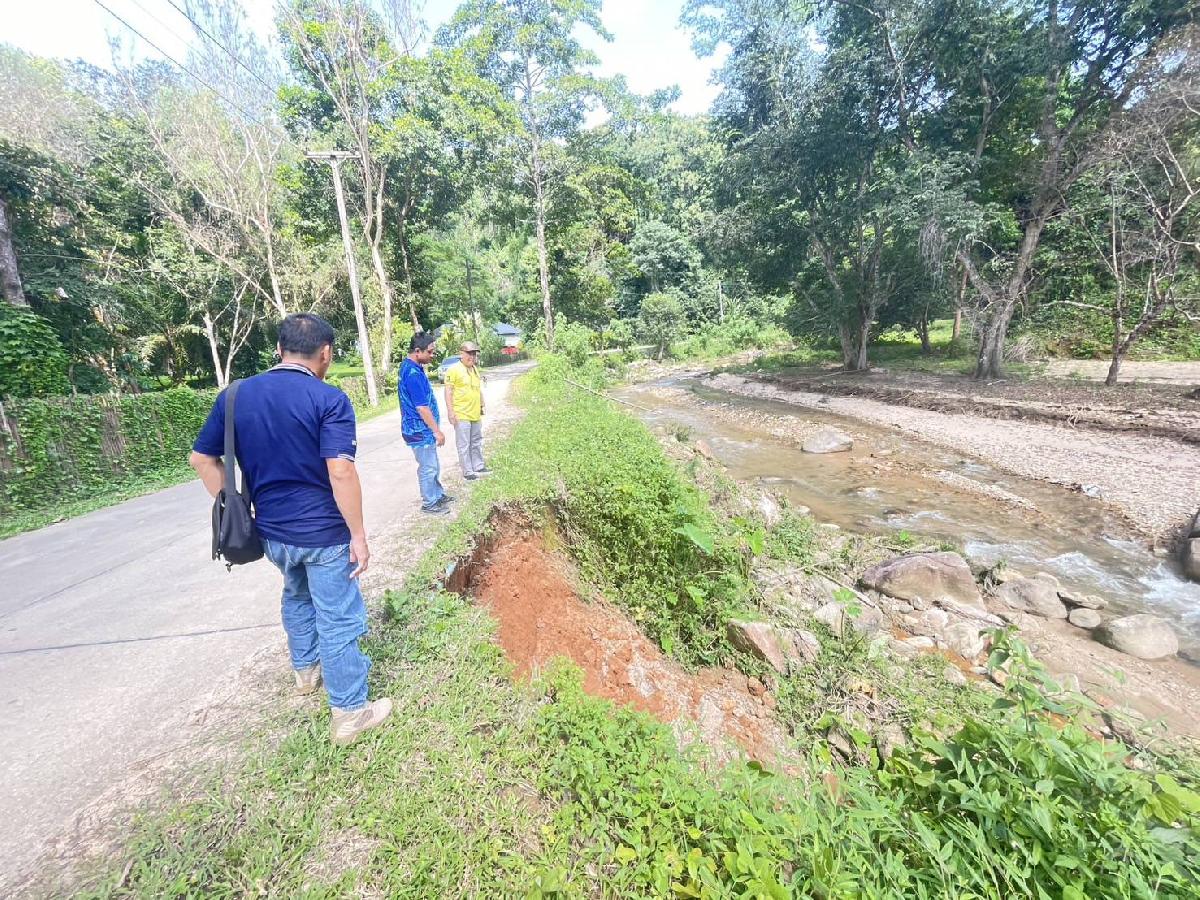 ลงพื้นที่ตรวจสอบน้ำป่าไหลหลาก กัดเซอะ ถนนและแนวตลิ่ง ติดแม่น้ำห้วยแม่ซ้าย บริเวณช่วงถนนเส้น บ้านห้วยแม่ซ้าย หมู่ที่ 11 - บ้านห้วยน้ำตก(บ้านจะแล) หมู่ที่ 19