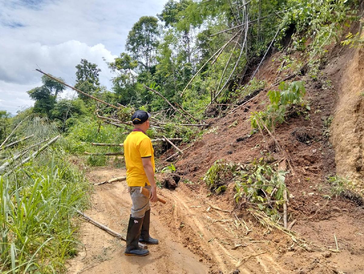 ลงพื้นที่สำรวจความเสียหายจากดินสไลด์ จากฝนตกหนักช่วง พายุวิภา ทำให้มีน้ำป่าไหลหลาก กัดเซอะ ถนนและแนวตลิ่ง ตั้งแต่บ้านพนาสวรรค์ หมู่ที่ 13 ถึง บ้านลอบือ บ้านบริวาร
