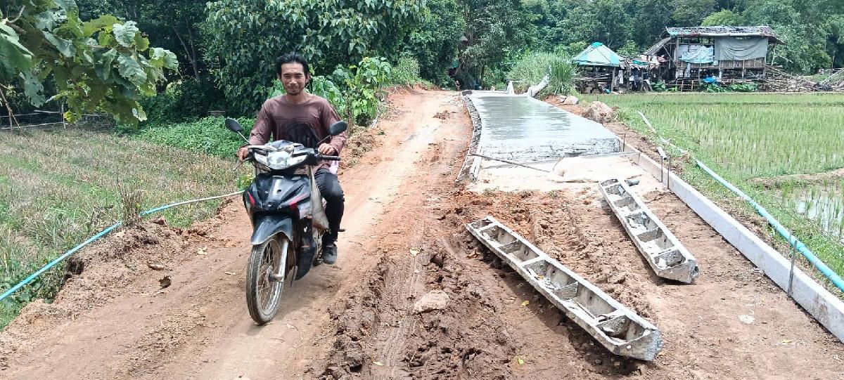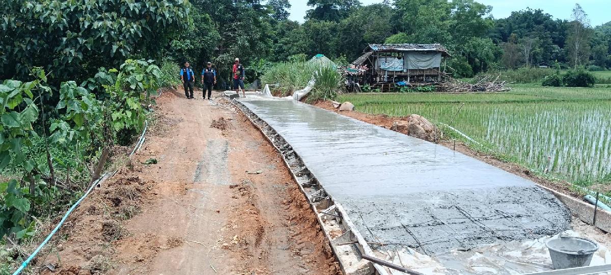 ลงพื้นตรวจดูความคืบหน้าโครงการก่อสร้างถนนคอนกรีตเสริมเหล็ก ถนนเส้นบ้านรวมมิตร หมู่ที่ 2 (ซอย 11)