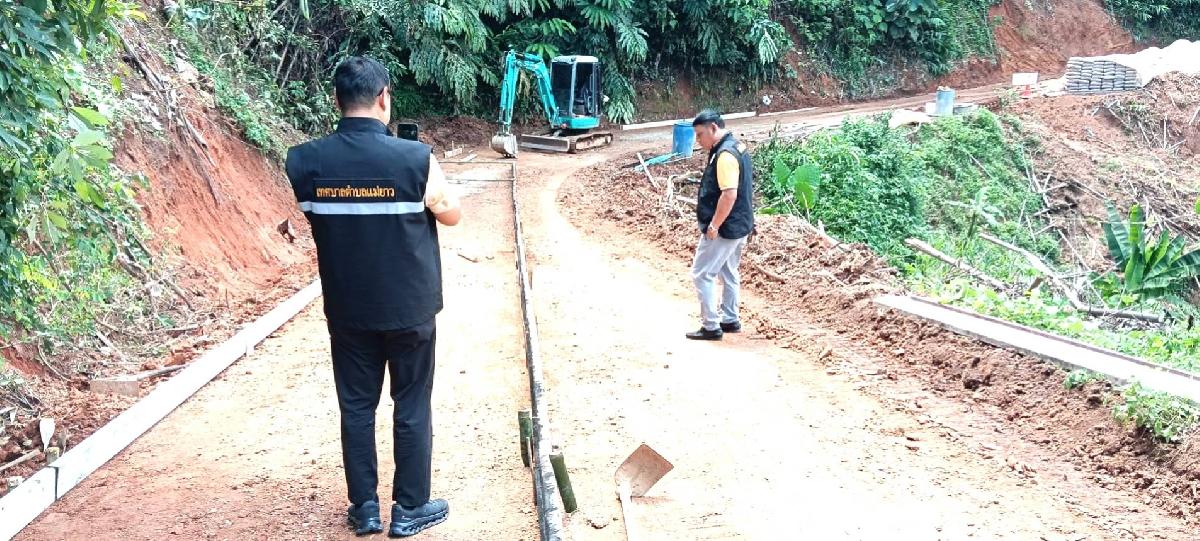#ลงพื้นตรวจดูความคืบหน้าโครงการก่อสร้างและปรับปรุงถนนคอนกรีตเสริมเหล็ก ถนนเส้นบ้านสองแควพัฒนา บ้านจะแตะ (บ้านบริวาร) บ้านห้วยขมนอก หมู่ที่ 10 ตำบลแม่ยาว