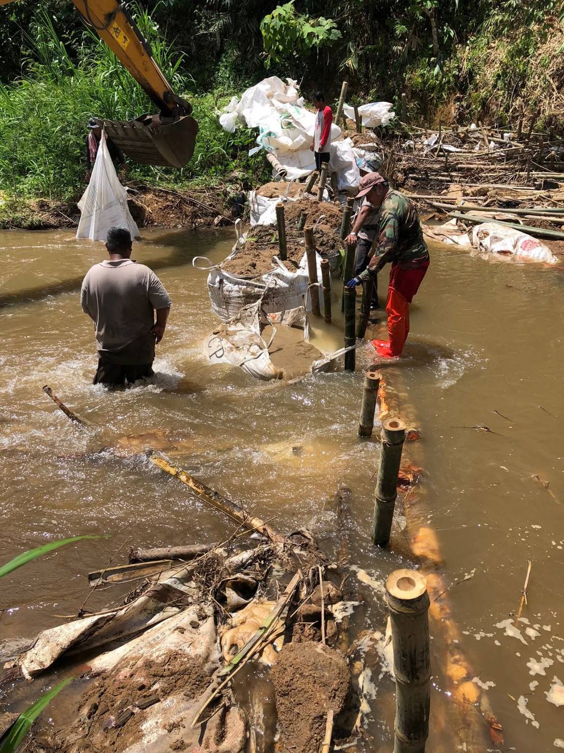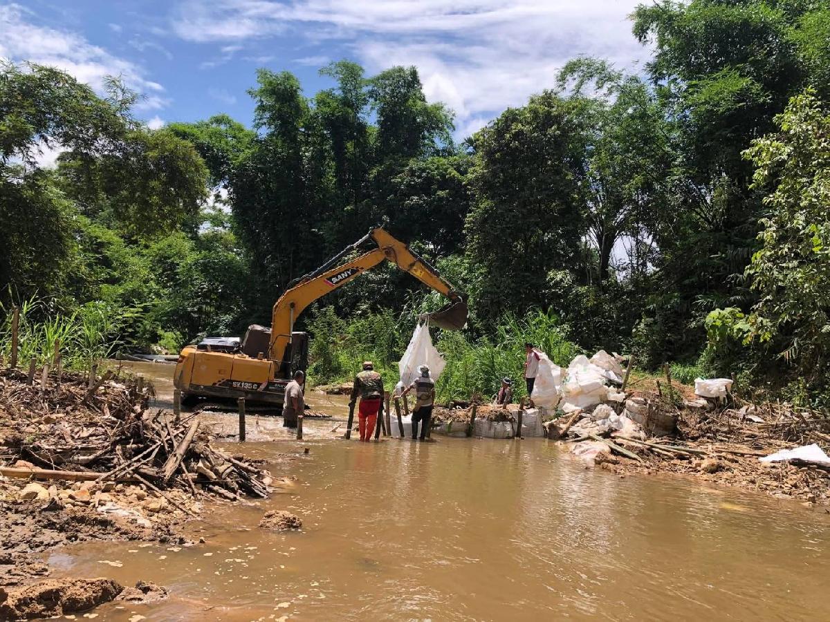 ซ่อมแซมฝายกั้นน้ำในลำน้ำเหมืองการเกษตรของชาวบ้านห้วยขมนอก หมู่ที่ 10