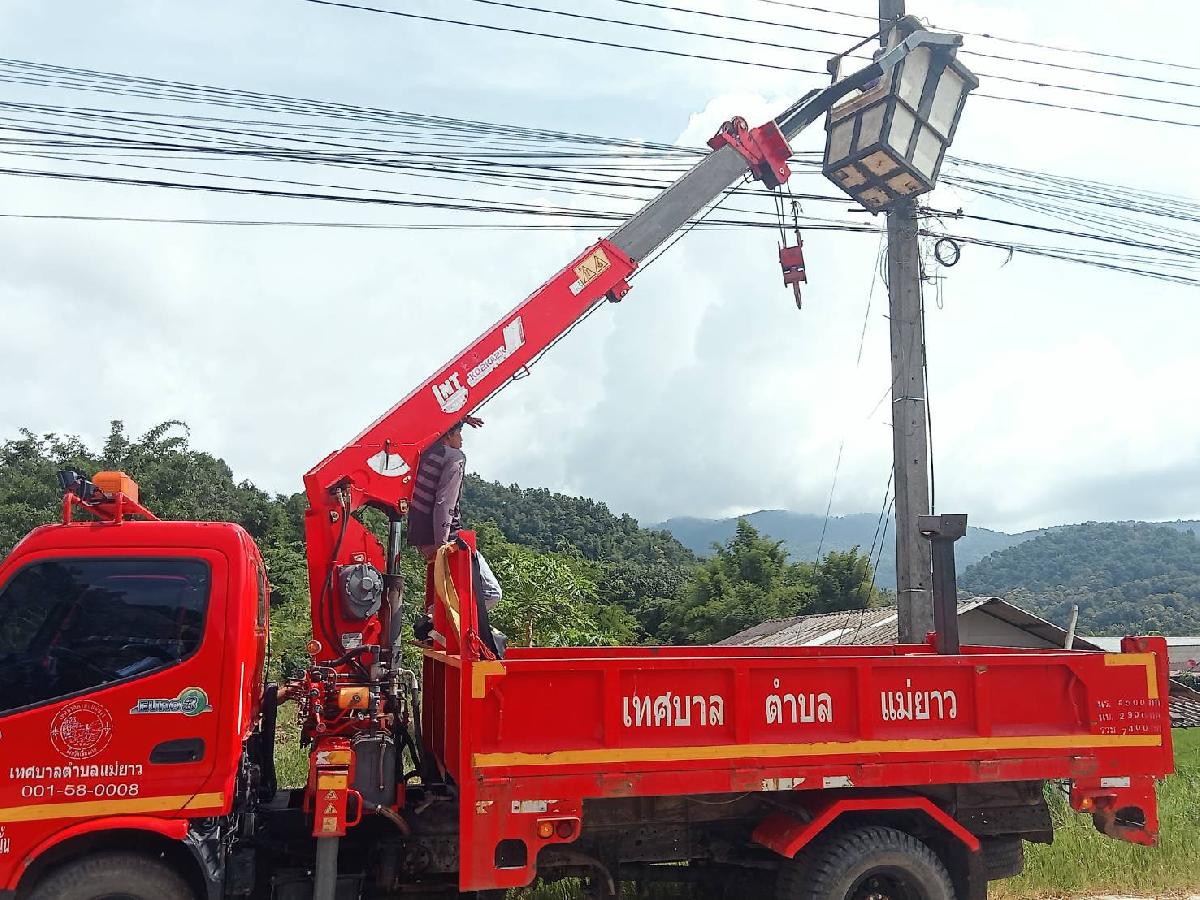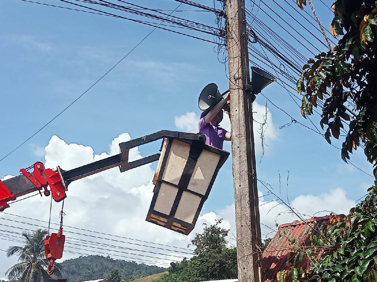 นำรถกระเช้าออกพื้นที่ ซ่อมแซม ระบบหอกระจายข่าวประจำหมู่บ้าน บ้านห้วยขมใน หมู่ที่ 1 ตามที่ได้รับแจ้ง