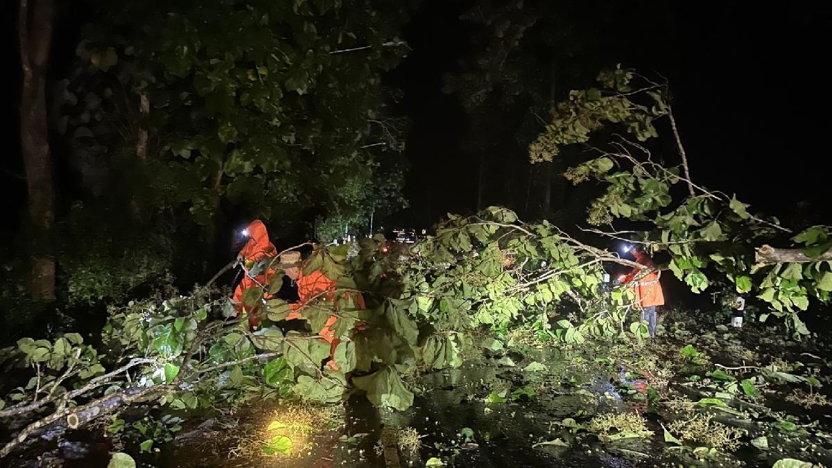 ออกตรวจสอบต้นไม้ล้มกีดขวางทางสัญจรก่อนถึงสามแยกบงแดง บ้านบริวารบ้านห้วยทรายขาว หมู่ 3