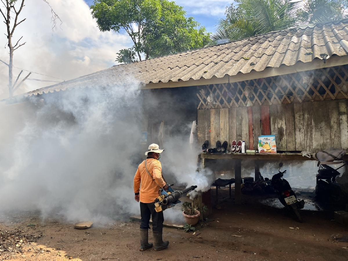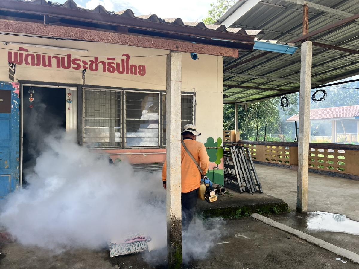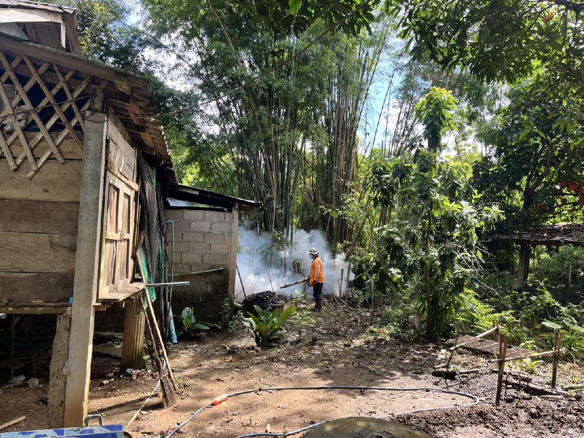 ลงพื้นที่พ่นหมอกควันผู้ป่วยไข้เลือดออก เพื่อป้องกันโรคไข้เลือดออกระบาดในพื้นที่ ณ บ้านห้วยทรายขาว หมู่ที่ 3