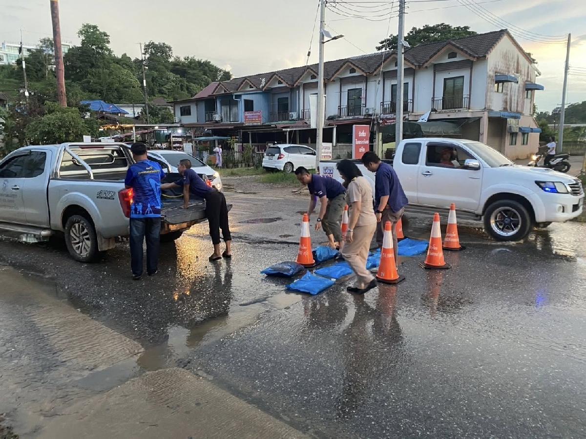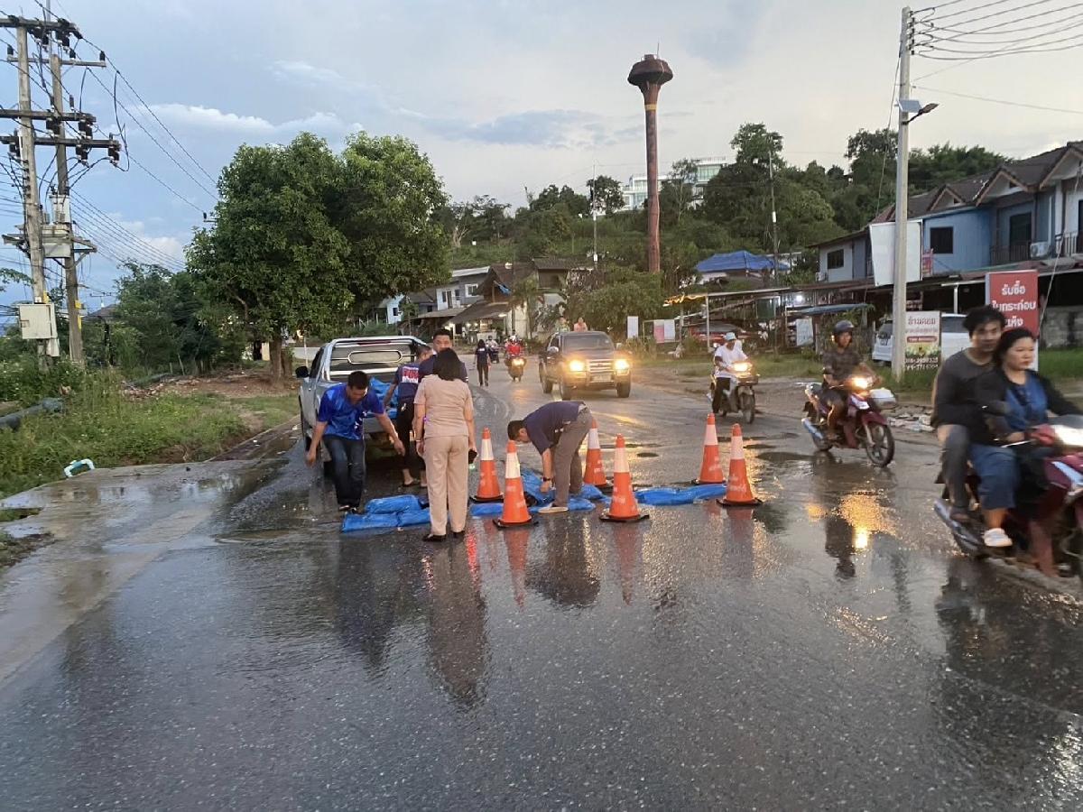 #นางสาวศิริรัตน์ สันธิ ปลัดเทศบาลตำบลแม่ยาว พร้อมด้วยหัวหน้าฝ่ายปกครอง งานป้องกันบรรเทาสาธารณภัย งานไฟฟ้า งานช่างโยธา ร่วมกันซ่อมแซมถนนบริเวณบ้านดอย ที่ถูกน้ำเซาะเป็นหลุมลึก