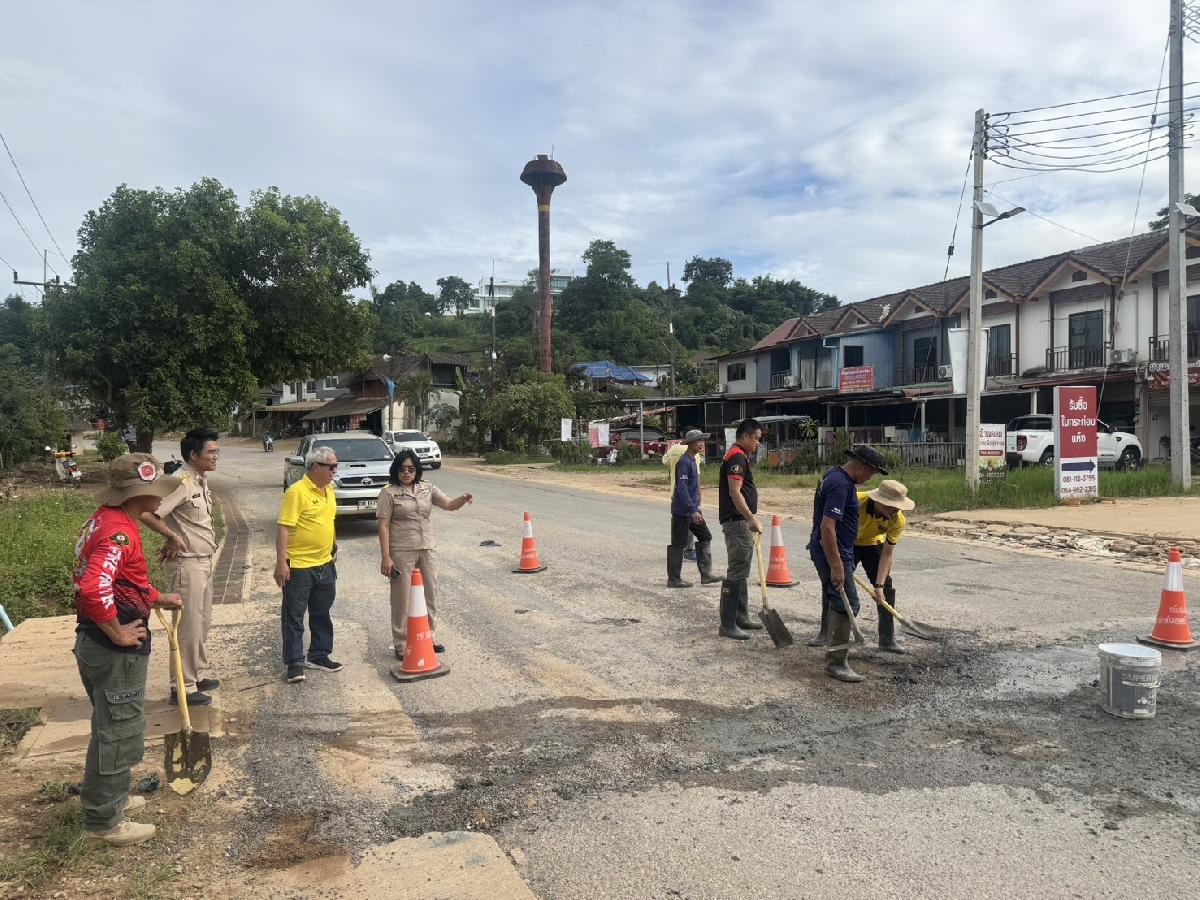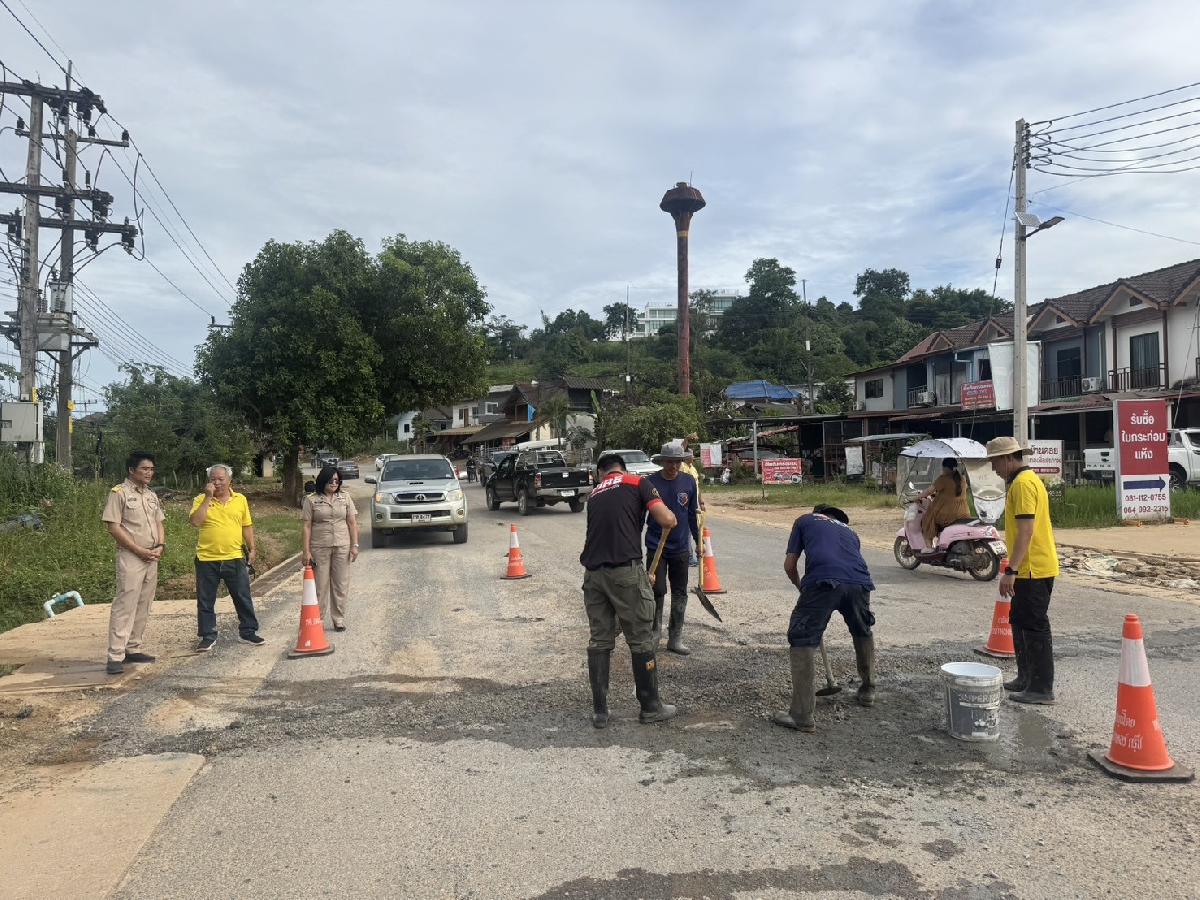 ##นางสาวศิริรัตน์ สันธิ ปลัดเทศบาลตำบลแม่ยาว #นายองอาจ ชัยชนะยานนท์ รองปลัดเทศบาลตำบลแม่ยาว #หัวหน้าฝ่ายปกครอง งานป้องกันบรรเทาสาธารณภัย และหัวหน้าฝ่ายแบบแผนและก่อสร้าง พนักงานกองช่างเทศบาล ร่วมกันซ่อมแซมถนนบริเวณบ้านดอย ที่ถูกน้ำเซาะเป็นหลุมลึก เพื่อให้ถนนเส้นทางดังกล่าวดีขึ้น ไม่เป็นหลุมเป็นบ่อ สัญจรได้สะดวก ป้องกันอุบัติเหตุทางถนน