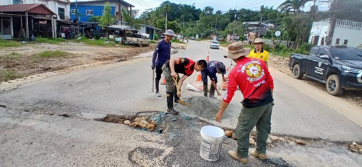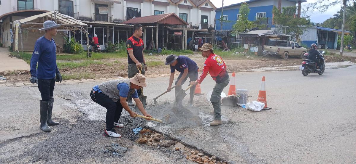ซ่อมแซมถนนบริเวณบ้านดอย ที่ถูกน้ำเซาะเป็นหลุมลึก เพื่อให้ถนนเส้นทางดังกล่าวดีขึ้น