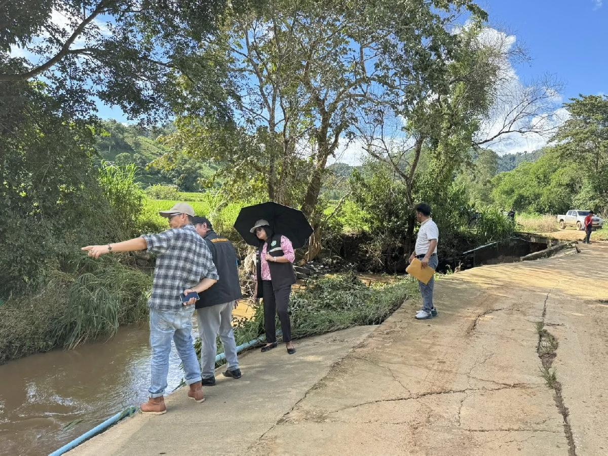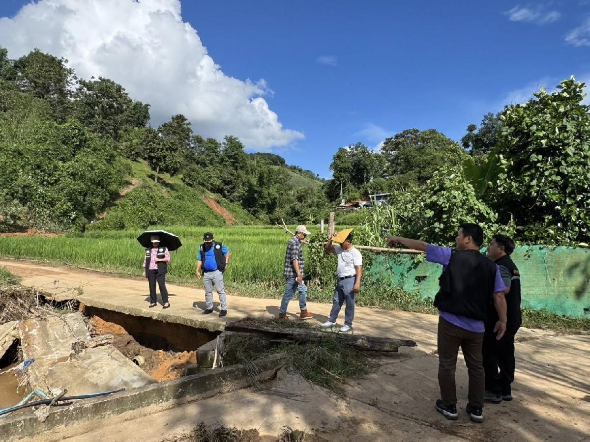 หัวหน้าฝ่ายปกครอง เจ้าหน้าที่กองช่าง เจ้าหน้าที่ป้องกันและบรรเทาสาธารณะภัย ร่วมสำรวจแก้ไขปัญหาน้ำท่วมขังบ้านประชาชน ,น้ำกัดเซาะตลิ่ง และดินสไลด์ปิดทับถนนสัญจร
