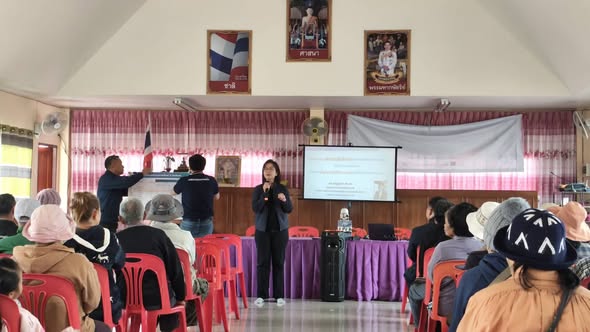 ข้าประชุมประชาคม ร่วมกับผู้ใหญ่บ้าน และประชาชน บ้านริมกก หมู่ที่ 4 หัวข้อการปรับปรุงคุณภาพน้ำประปาหมู่บ้าน การกำจัดสารพิษปนเปื้อนในระบบประปาหมู่บ้าน