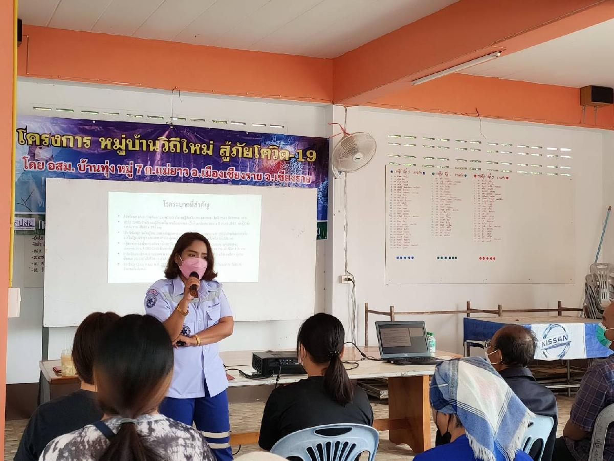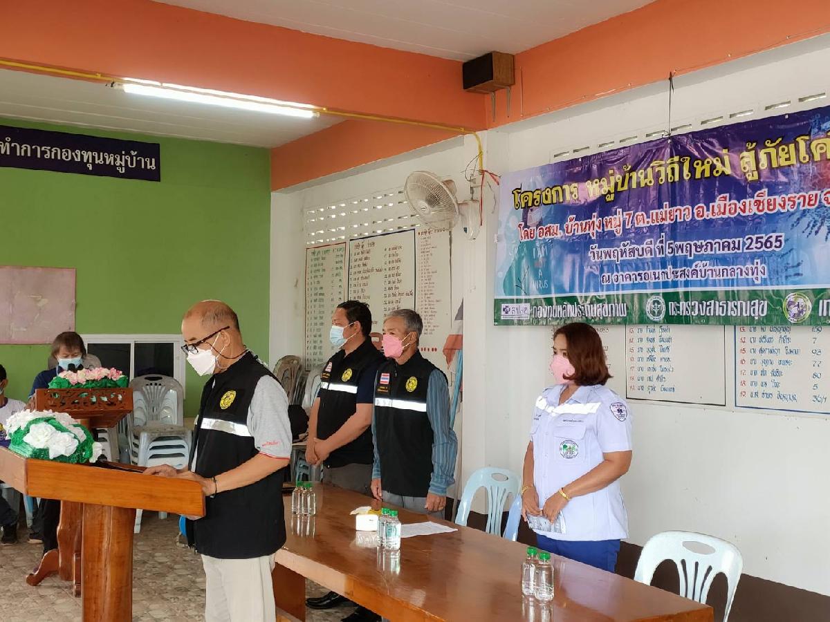 วัน พฤหัสบดี ที่ 5 เดือน พฤษภาคม พ.ศ. 2565 นายอภิรักษ์ อินต๊ะวัง นายกเทศมนตรีตำบลแม่ยาว พร้อมด้วย ที่ปรึกษานายกเทศมนตสมาชิกสภาเทศบาลเขต 2 ฝ่ายปกครองหมู่ที่ 7 และเจ้าหน้าที่กองสาธารณสุขและสิ่งแวดล้อม ได้รับเกียรติเรียนเชิญเป็นประธานเปิดและติดตามโครงการหมู่บ้านวิถีใหม่ สู้ภัยโควิด 19 ณ หอประชุม อาคารอเนกประสงค์ บ้านกลางทุ่ง หมู่ที่ 7