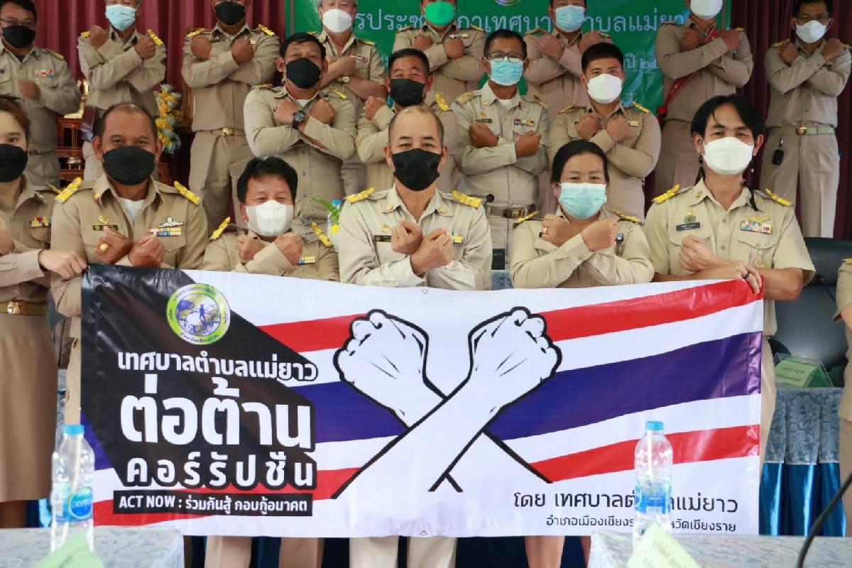 เทศบาลตำบลแม่ยาว ประกาศเจตจำนงและแสดงออกซึ่งสัญลักษณ์ในการต่อต้านการทุจริตคอรัปชั่น
