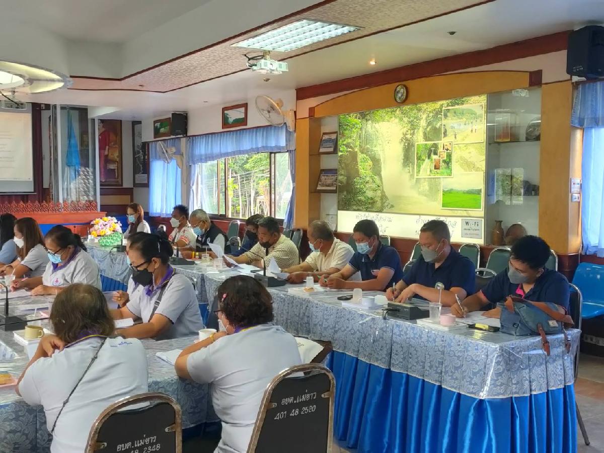 วันพุธ ที่ 8 มิถุนายน 2565 ท่านนายอภิรักษ์ อินต๊ะวัง นายกเทศมนตรีตำบลแม่ยาว รองนายกเทศมนตรี ปลัดเทศบาลตำบลแม่ยาว ผู้อำนวยการกองสาธารณสุขฯ และเจ้าหน้าที่กองสาธารณสุขฯ รพ.สต.ตำบลแม่ยาว/บ้านรวมมิตร/บ้านห้วยแม่ซ้าย/บ้านพนาสวรรค์ ผู้ใหญ่บ้าน ม.1-18 อสม.ม.1-18 ประชุมชี้แจงการจัดสรรงบประมาณรายจ่ายประจำปี พ.ศ.2566 งบเงินอุดหนุนทั่วไป สำหรับการดำเนินงานตามแนวทางโครงการพระราชดำริ ด้านสาธารณสุข ณ ห้องประชุม 248 อนุสรณ์ เทศบาลตำบลแม่ยาว