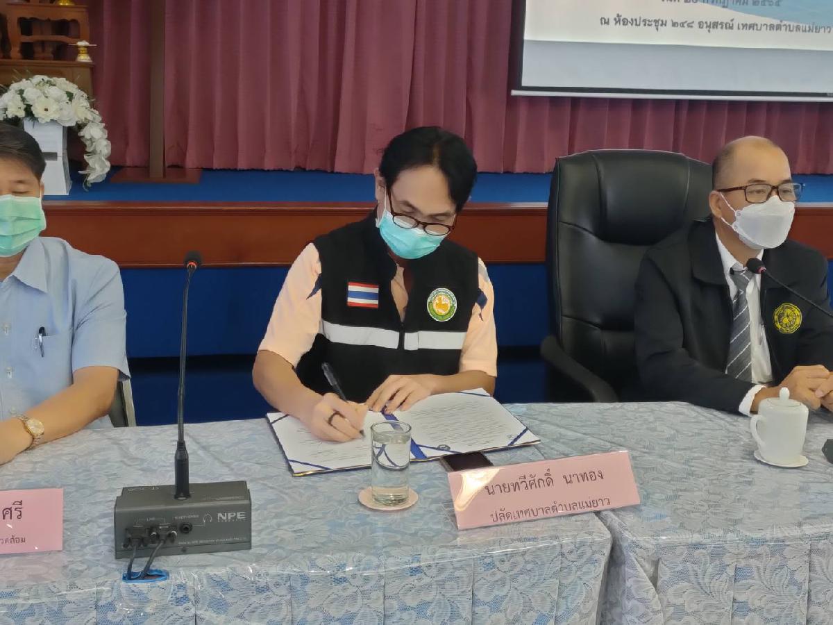 วันที่ 20 กรกฎาคม 2565 นายอภิรักษ์ อินต๊ะวัง นายกเทศมนตรีตำบลแม่ยาว พร้อมด้วยทีมงานบริหาร ปลัดเทศบาล รองปลัดเทศบาล หัวหน้าสำนักปลัด ผู้อำนวยการกองสาธารณสุขและสิ่งแวดล้อม นักวิชาการสาธารณสุข และคณะวิทยาศาสตร์สุขภาพ มหาวิทยาลัยราชภัฏเชียงราย ร่วมลงบันทึกข้อตกลง MOU เครือข่ายด้านการจัดการศึกษาสนับสนุนการเรียนการสอน ณ ห้องประชุม อาคาร 248 อนุสรณ์ เทศบาลตำบลแม่ยาว