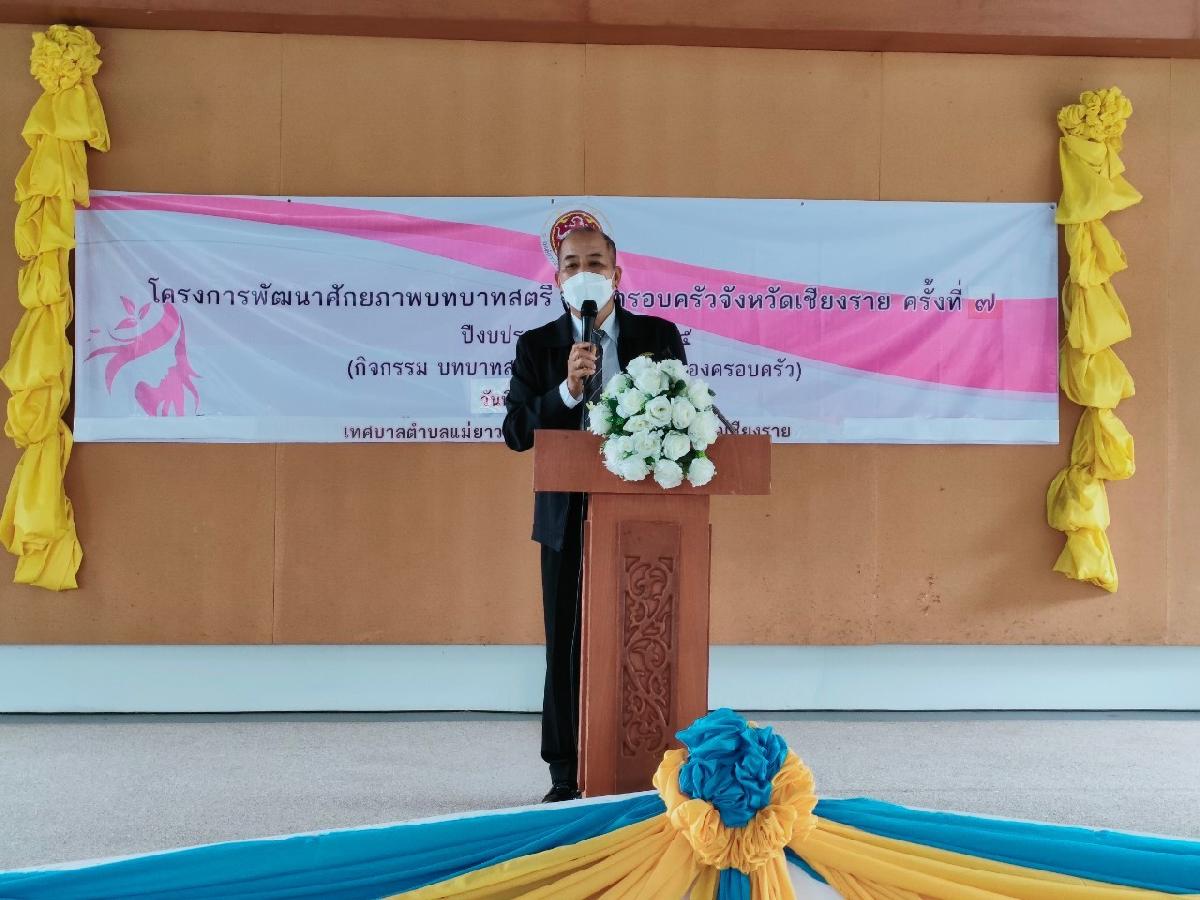 วันที่ 20 กรกฎาคม 2565 นายอภิรักษ์ อินต๊ะวัง นายกเทศมนตรีตำบลแม่ยาว พร้อมด้วยทีมบริหาร สมาชิกสภาเทศบาล เขต 1 และกลุ่มพัฒนาสตรีตำบลแม่ยาว เข้าร่วมโครงการพัฒนาศักยภาพบทบาทสตรีและครอบครัวจังหวัดเชียงราย ครั้งที่ 7 ประจำปีงบประมาณ 2565 ณ ศูนย์ฝึกอาชีพ เทศบาลตำบลแม่ยาว