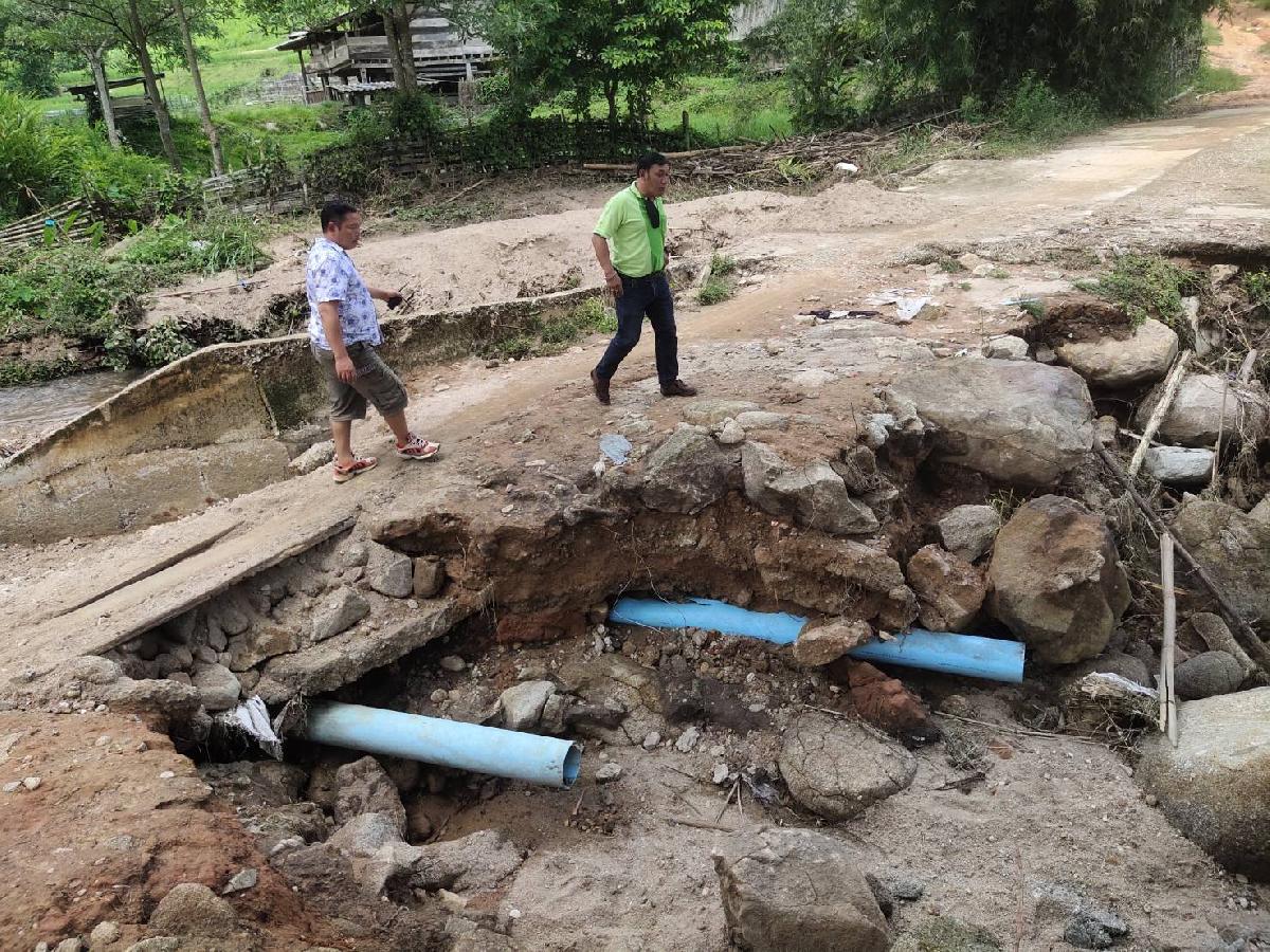 งานป้องกันฯ ตรวจสอบพื้นที่ที่ประสบปัญหาอุทกภัย หมู่ 13