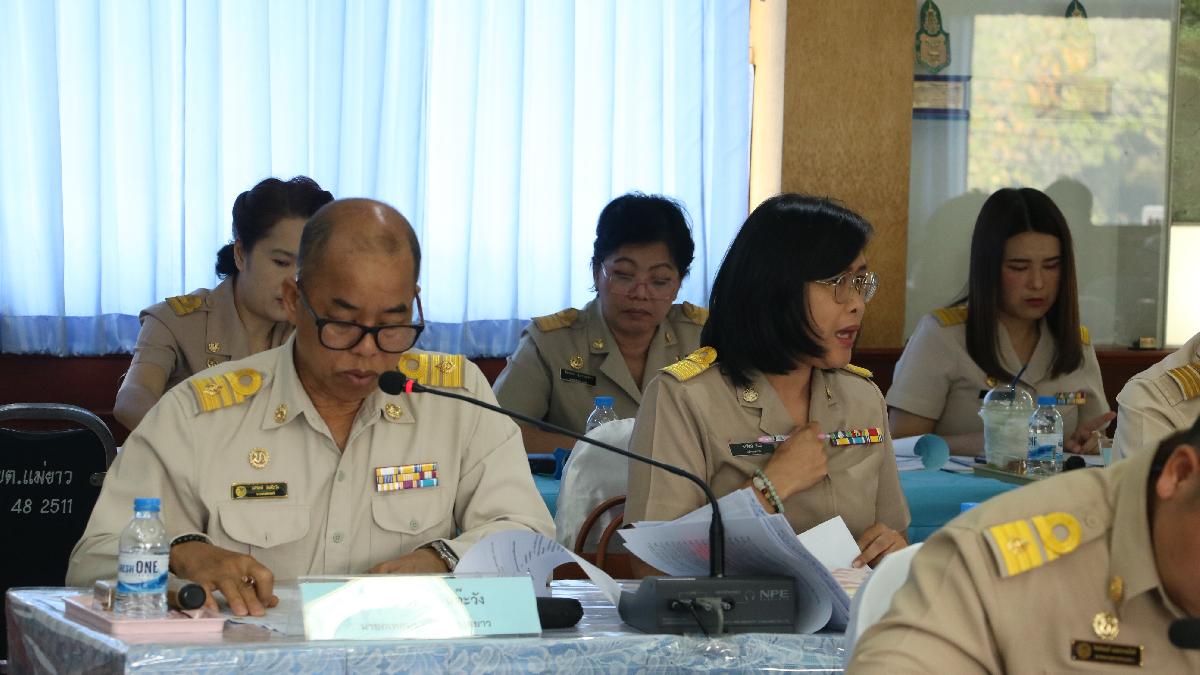 นายอภิรักษ์ อินต๊ะวัง นายกเทศมนตรีตำบลแม่ยาว ทีมบริหาร ประธานสภา สมาชิกสภาเทศบาลตำบลแม่ยาวเขต 1 เขต 2 ปลัดเทศบาล หน.สป. ผอ.กองทุกกอง หน.ฝ่ายทุกฝ่าย หน่วยตรวจสอบภายใน จนท.งานวิเคราะห์นโยบายและแผน จนท.งานราชการทั่วไป ร่วมประชุมสภาเทศบาลตำบลแม่ยาวสมัยวิสามัญ สมัยที่ 1 ประจำปี 2567