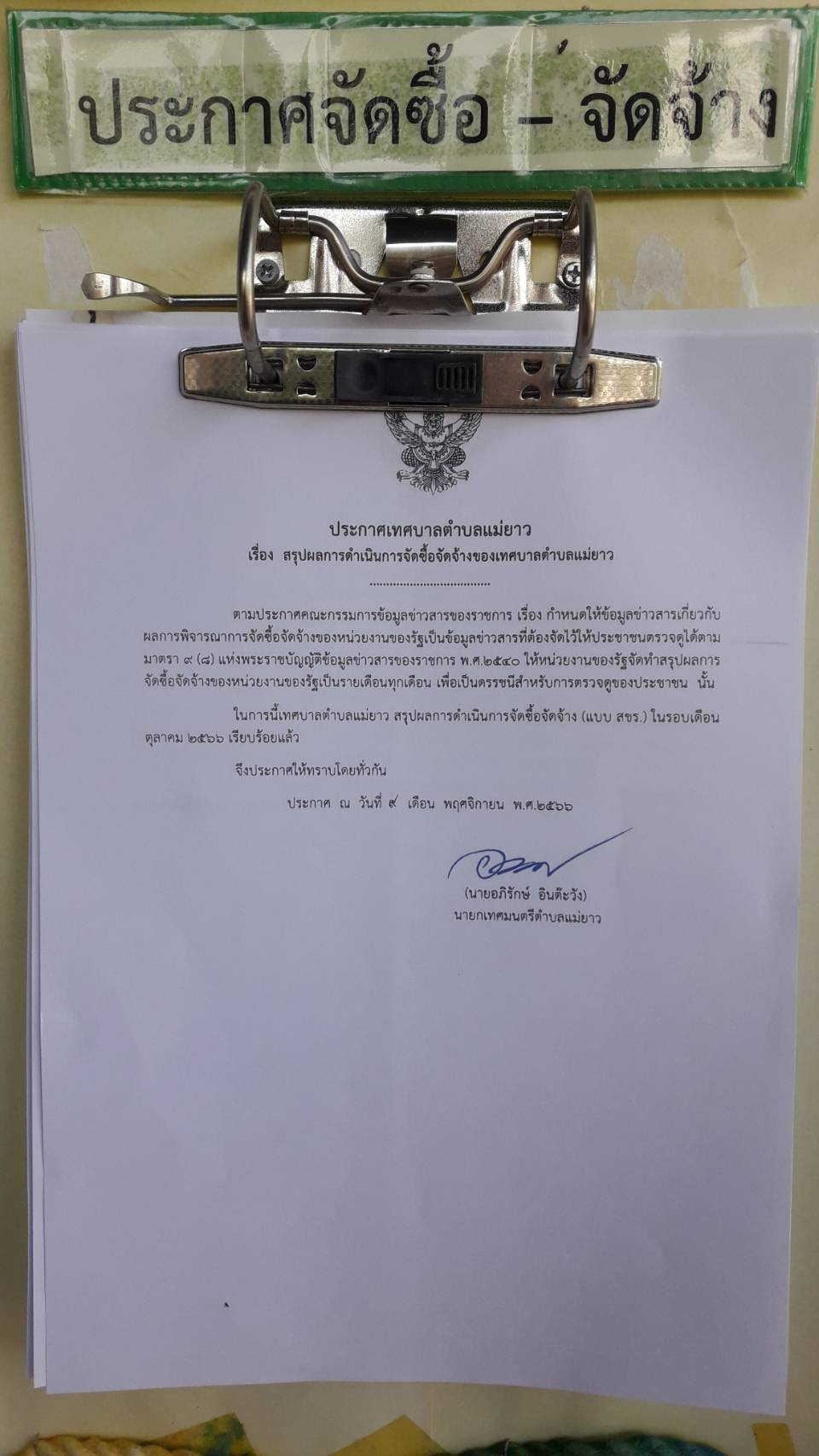 สรุปผลการจัดซื้อจัดจ้าง สขร.ประจำเดือนตุลาคม 2566