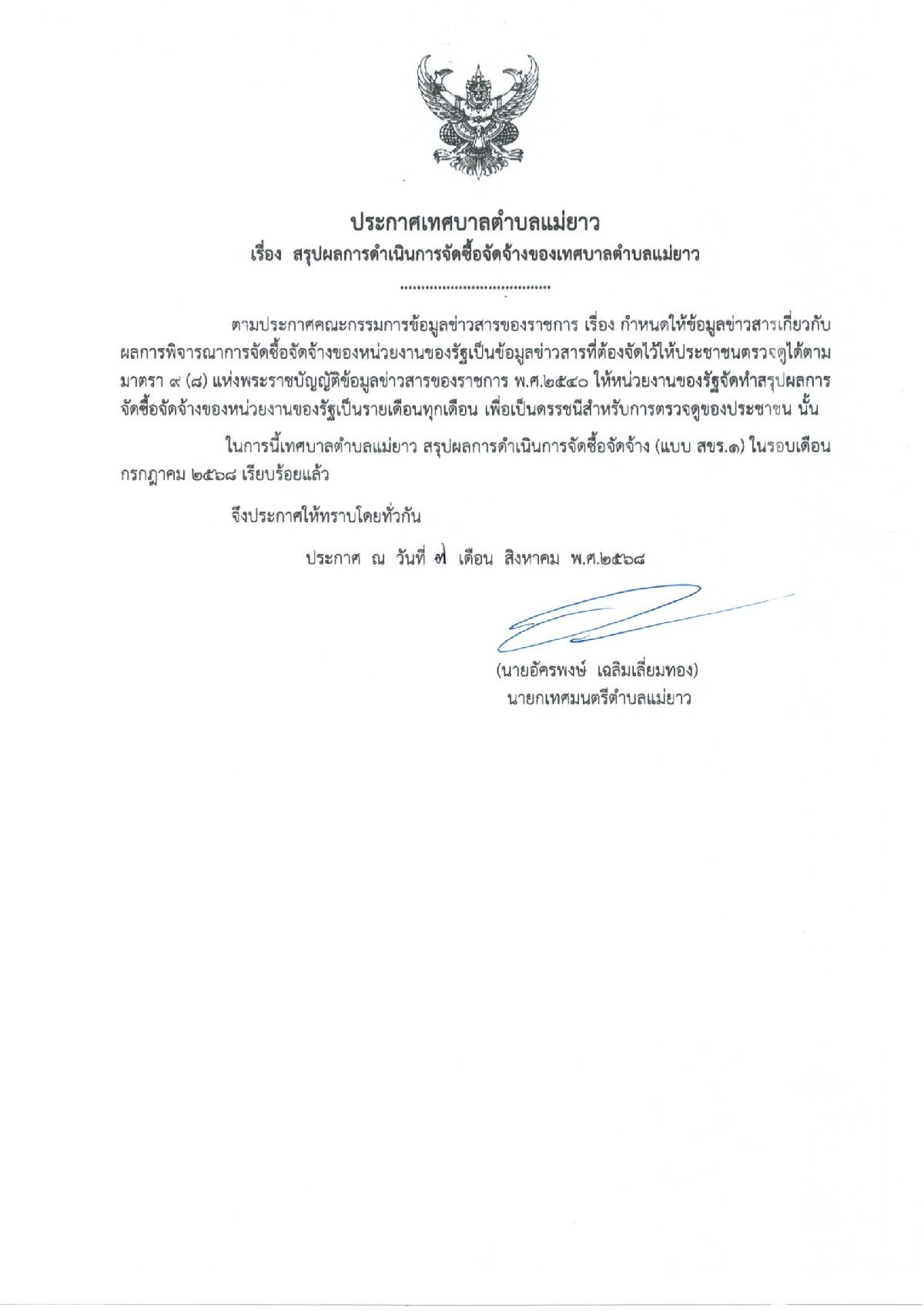 สรุปผลการจัดซื้อจัดจ้าง สขร.ประจำเดือนกรกฎาคม 2568